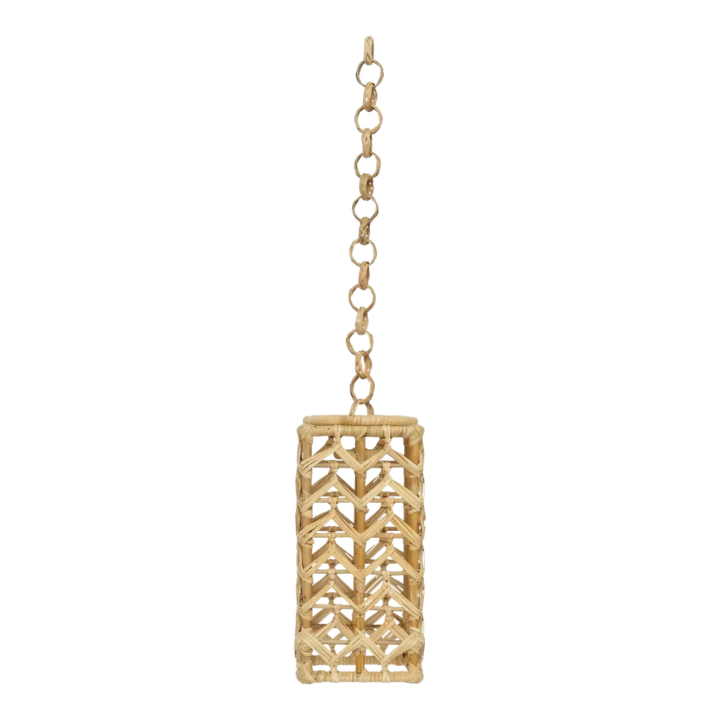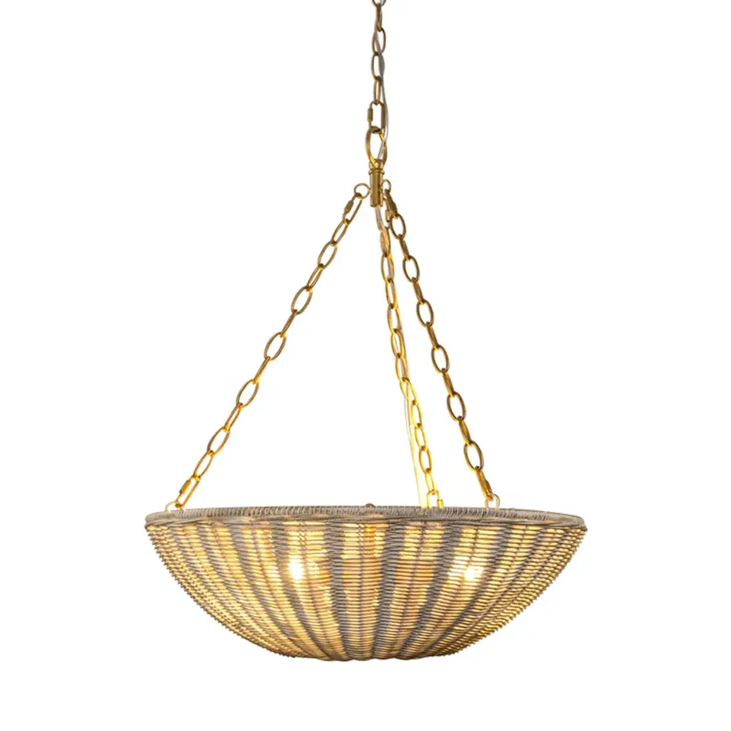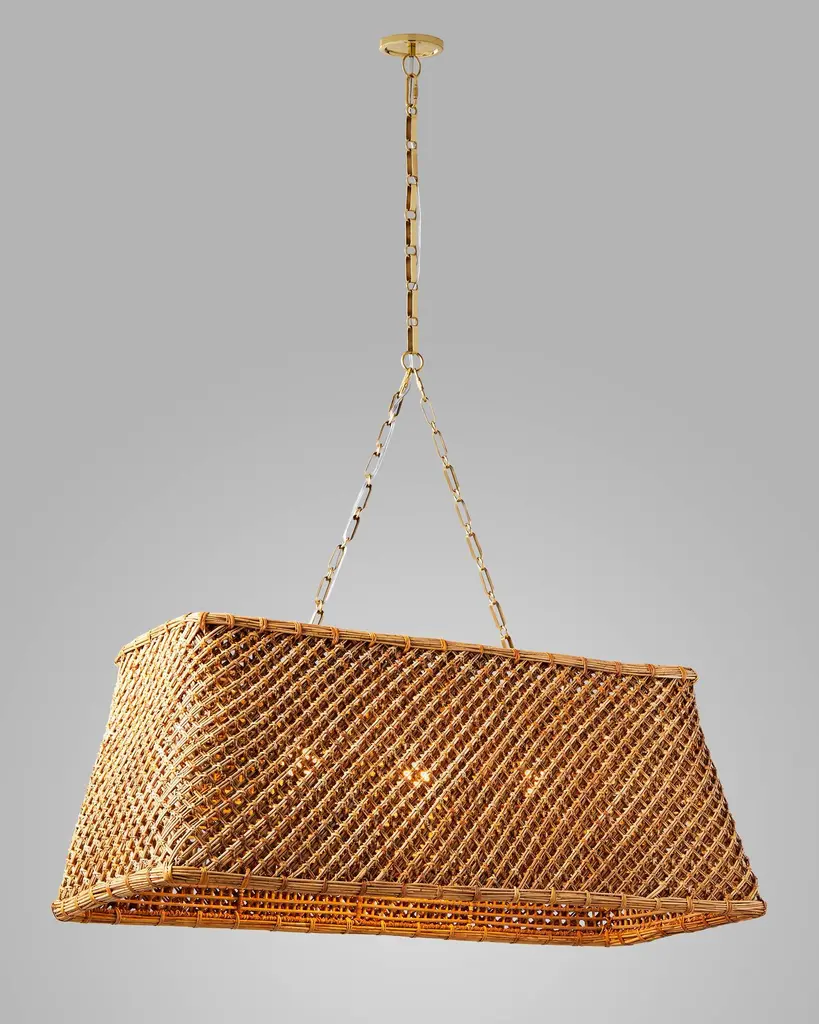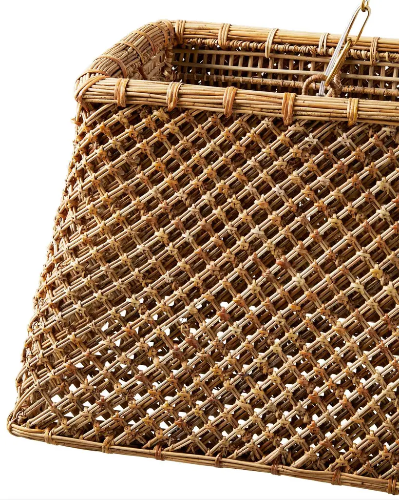 In all its finery. Woven rattan, layered in triplicate, and accessorized with a gleaming cable chain. For a room dressed to impress.