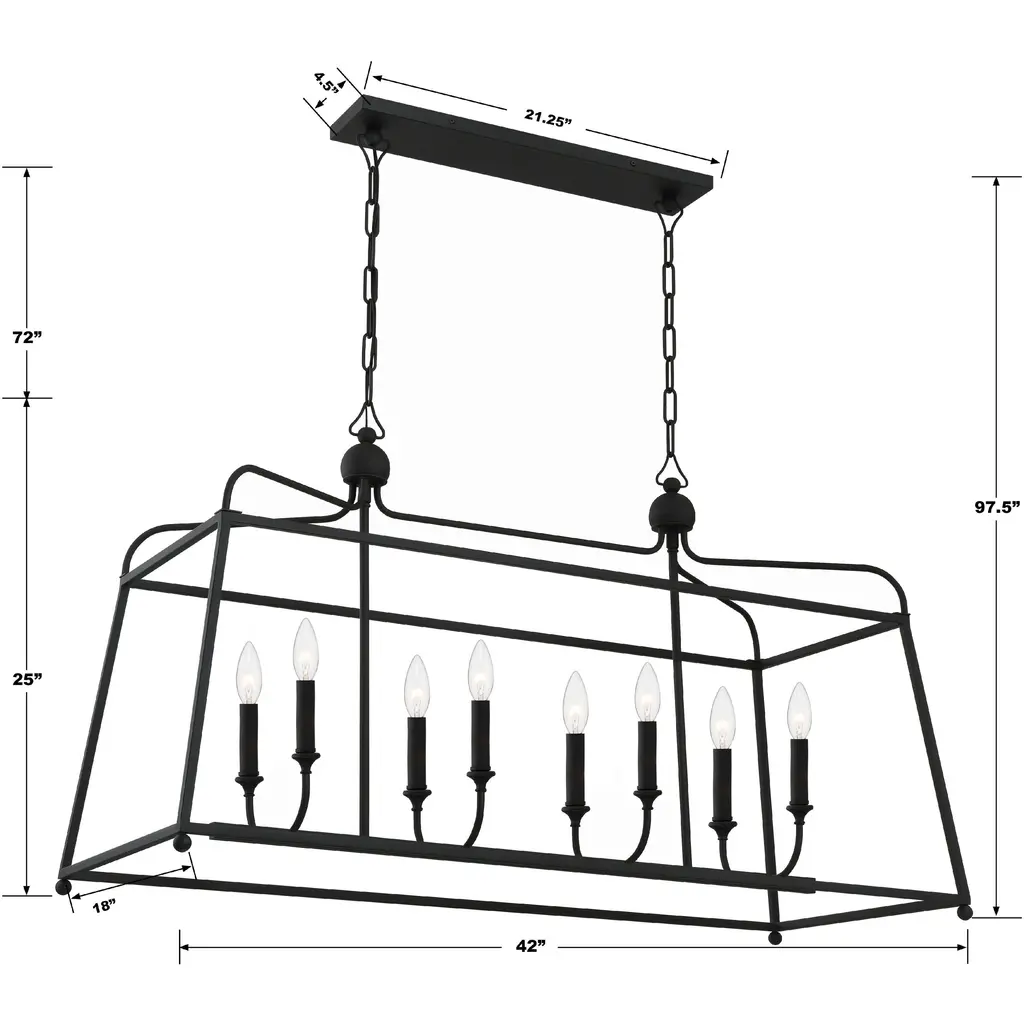 Sylvan 8 Light 42 Inch Black Forged Chandelier Ceiling Light