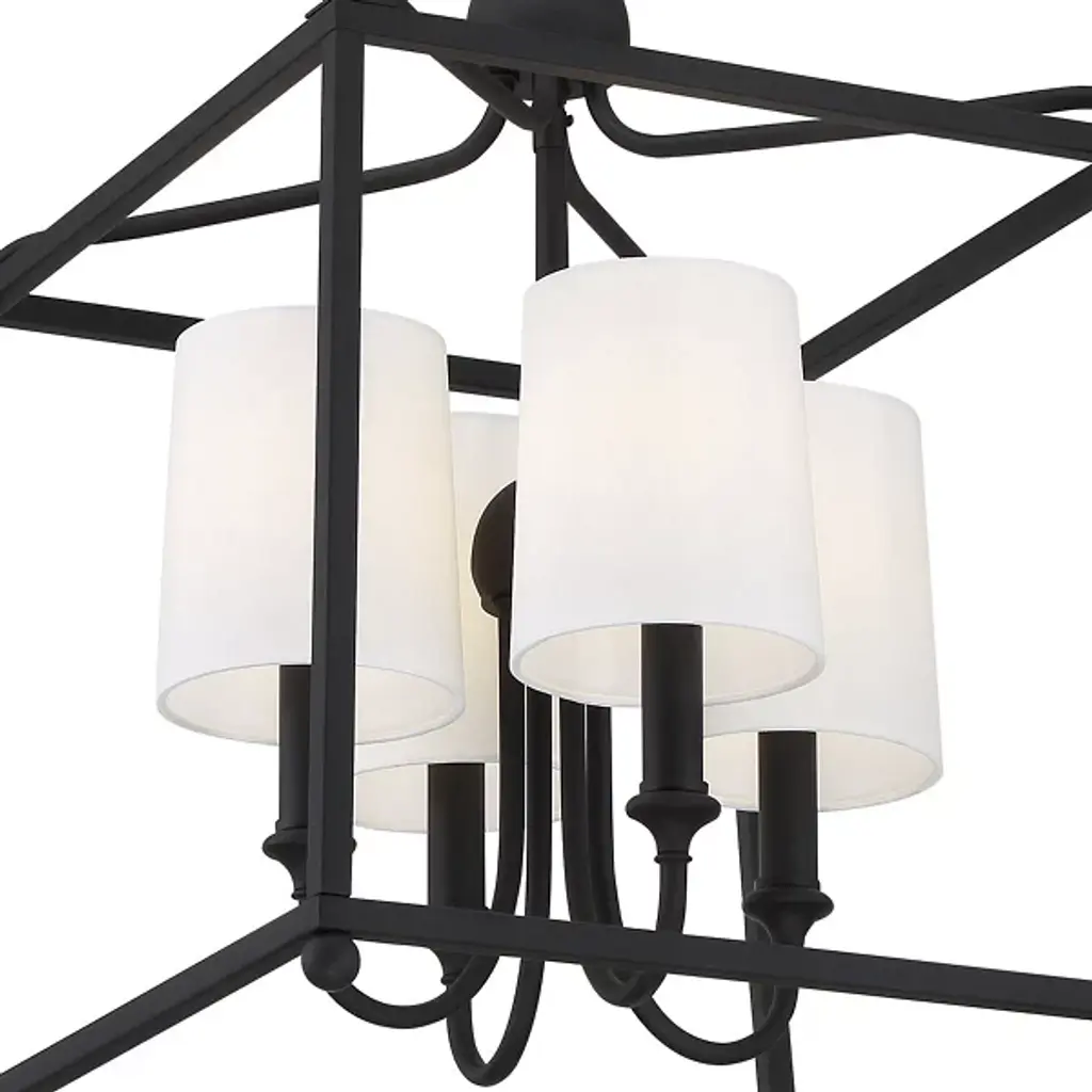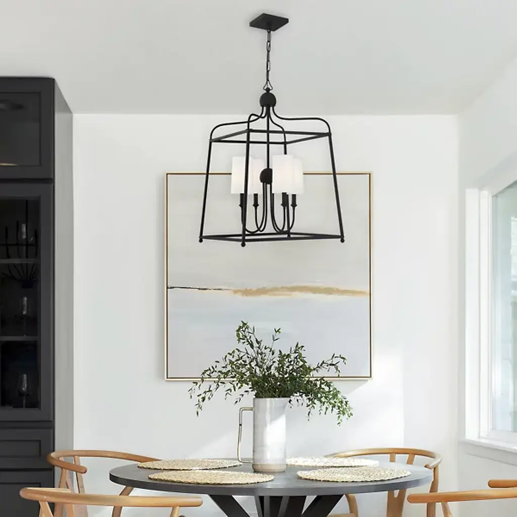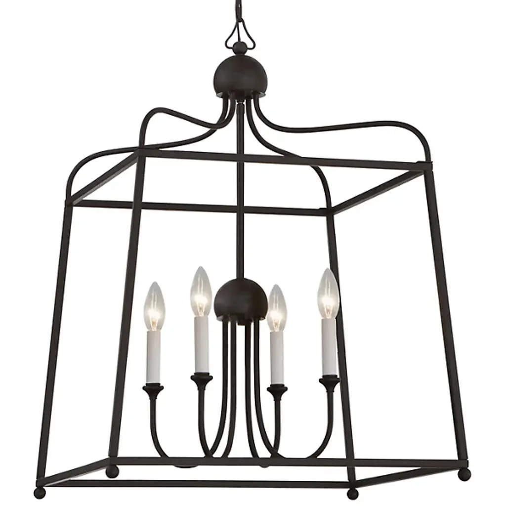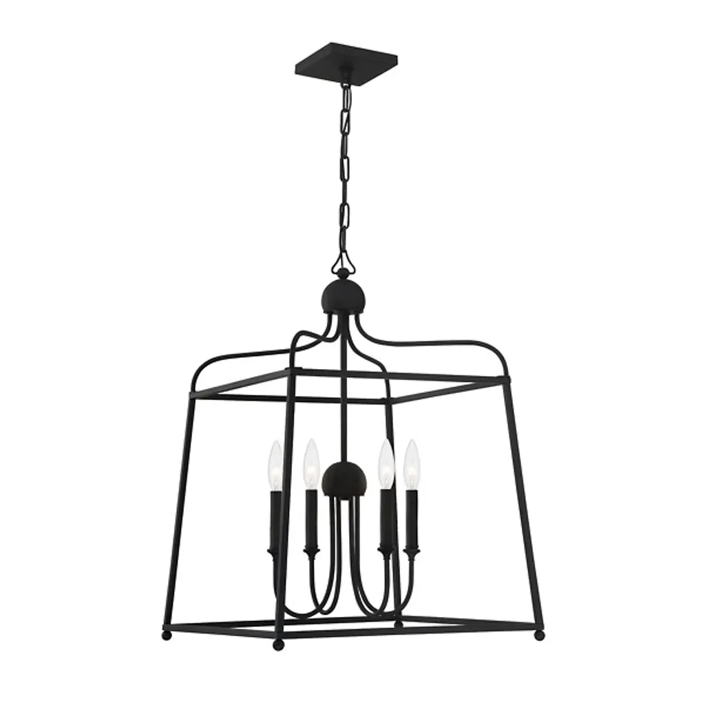 Sharp geometric lines meet traditional ornamental lines with the Sylvan Chandelier from Crystorama. Underlined by its sense of refinement as well as grace, it’s a piece that elegantly fills its space through an open-air steel construction made in a tapered shape and accentuated by flowing lines at the top. Curving arms sweep up from its central body holding a group of classically-styled lamp holders. Candelabra bulbs produce a rich light that warms up living and dining areas elegantly.