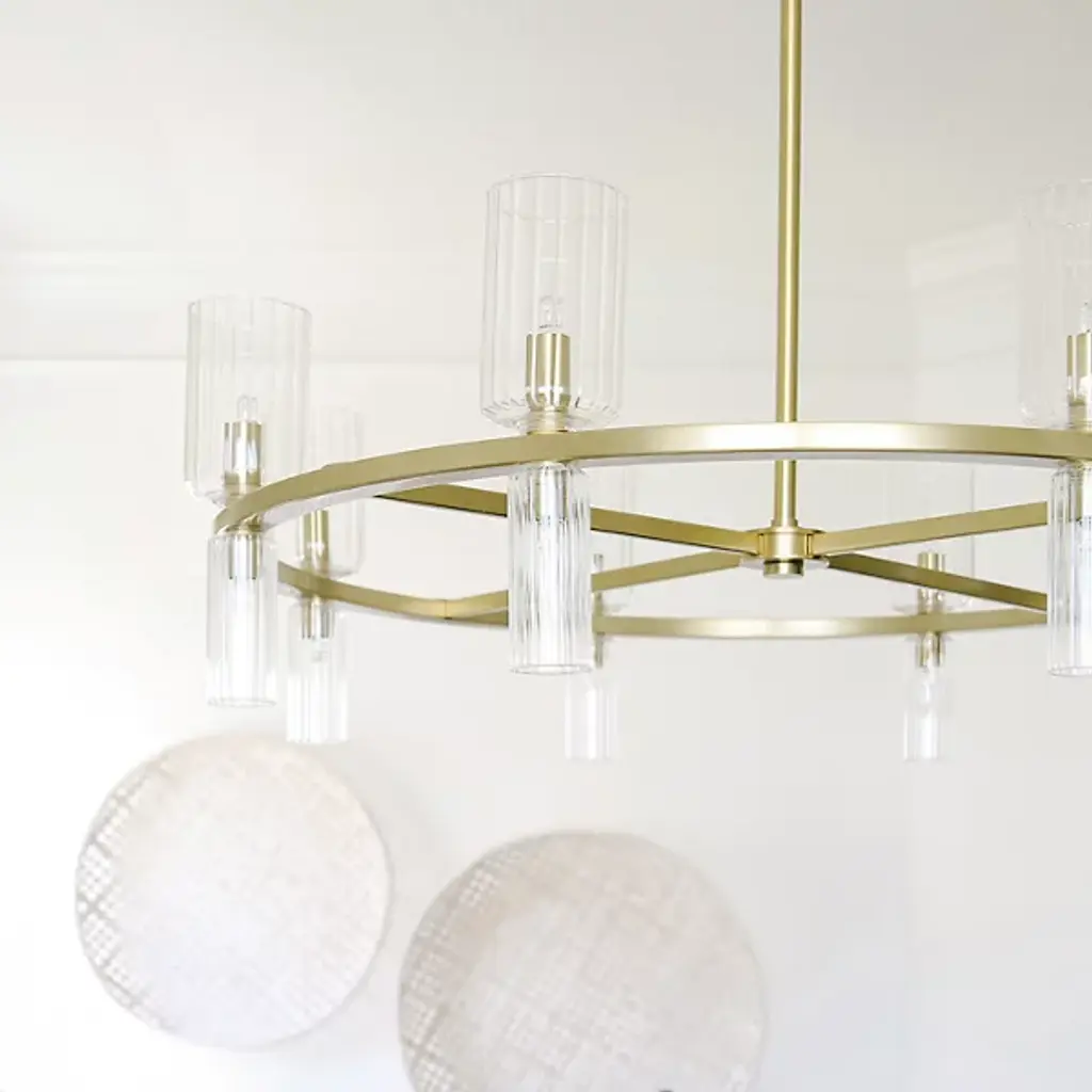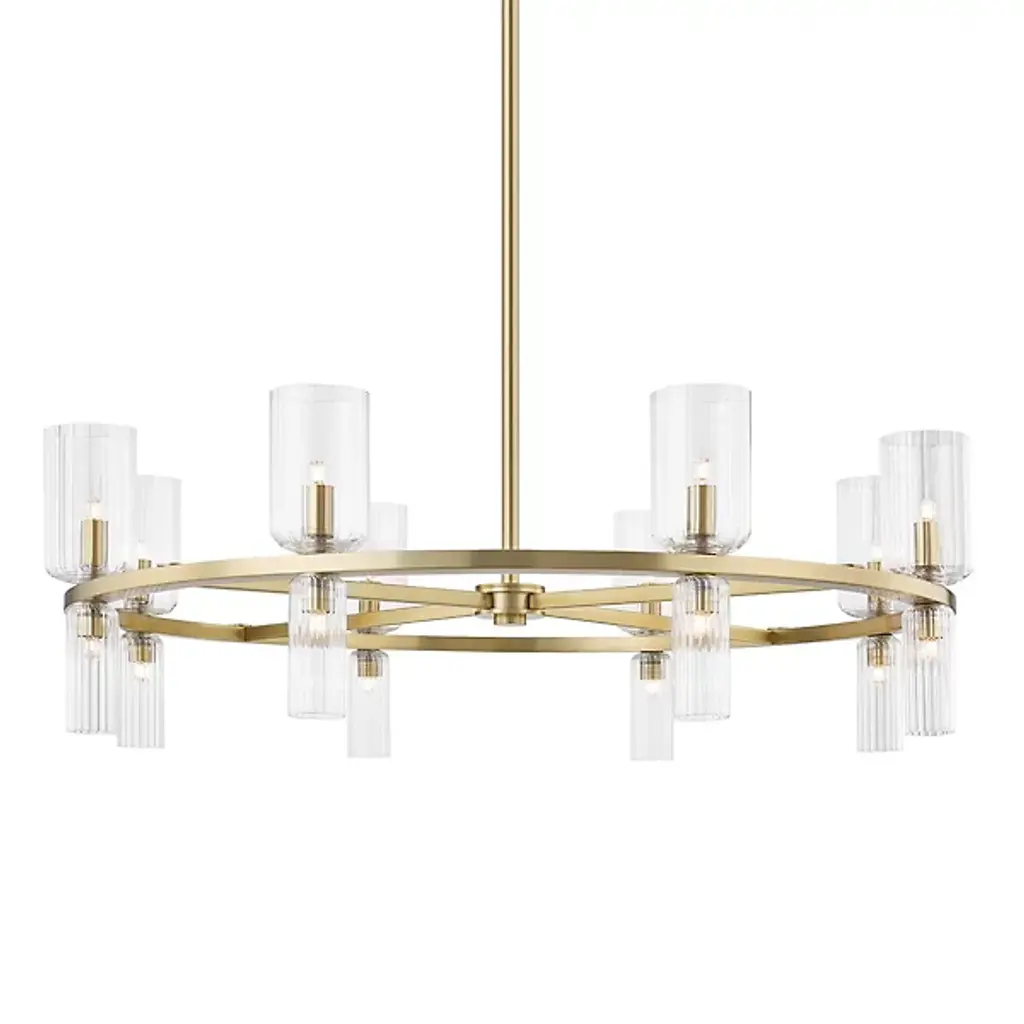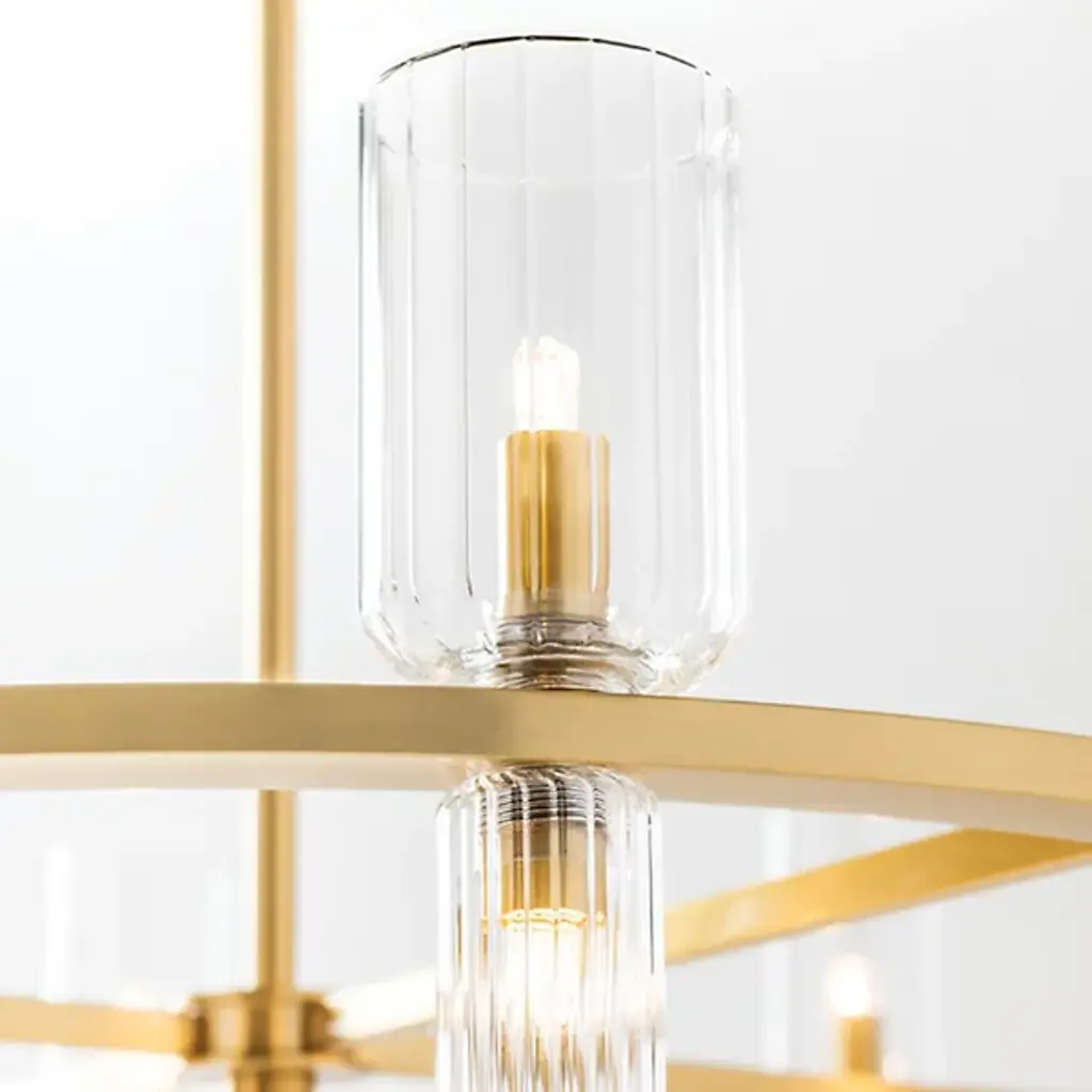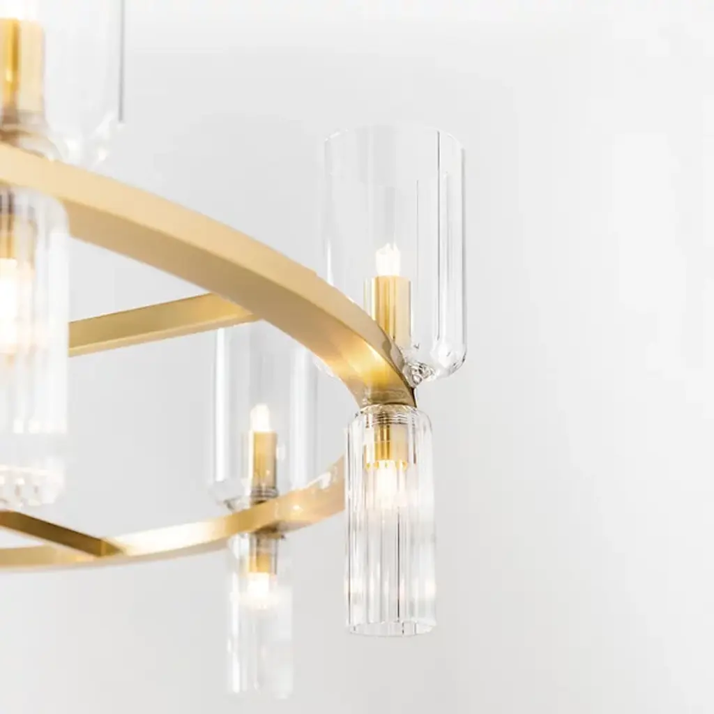 The stylish and modern Tabitha Chandelier from Mitzi incorporates a series of classic forms in a decidedly modern way, introducing a new look to big statement spaces like foyers and dining rooms with ease. It starts by building a frame on a classic Steel hoop, which is finished in a modern tone with a sturdy rod suspension. This frame is adorned with a collection of Clear Glass cloche shades, set on both the top and bottom of the frame in differing sizes with a set of candelabra bulbs to enhance its light effect. The result is a stylish contemporary lamp that has strong roots in traditional style—a timeless favorite with an architectural quality that defines a room.