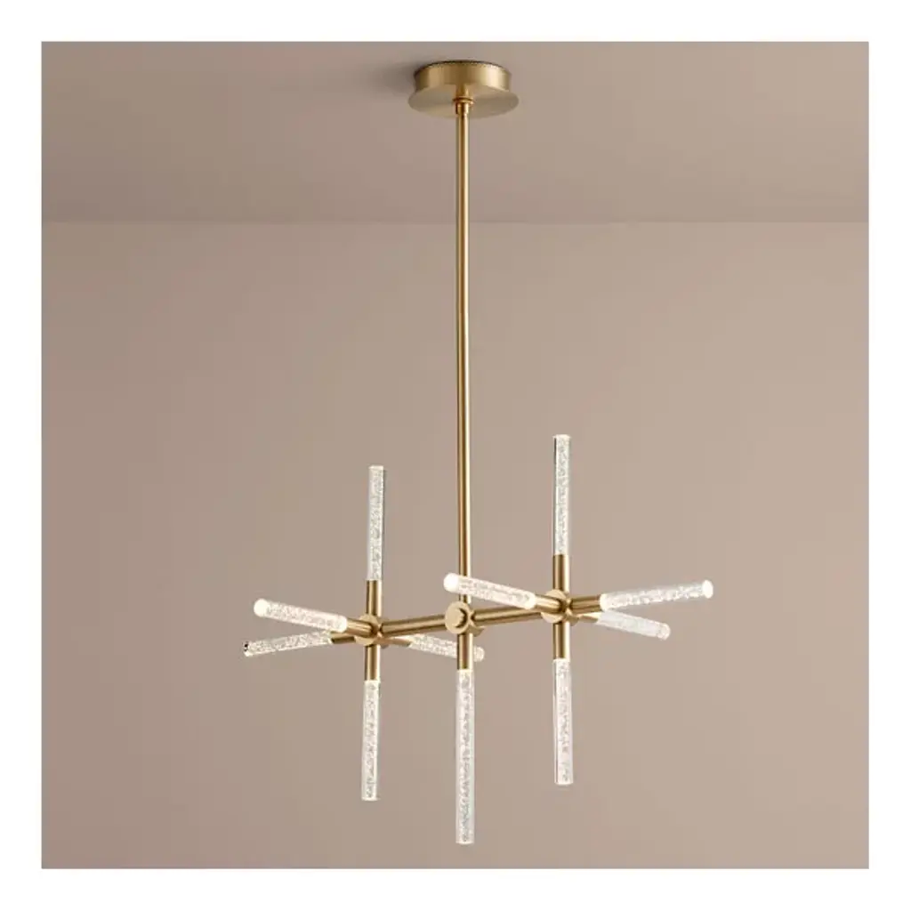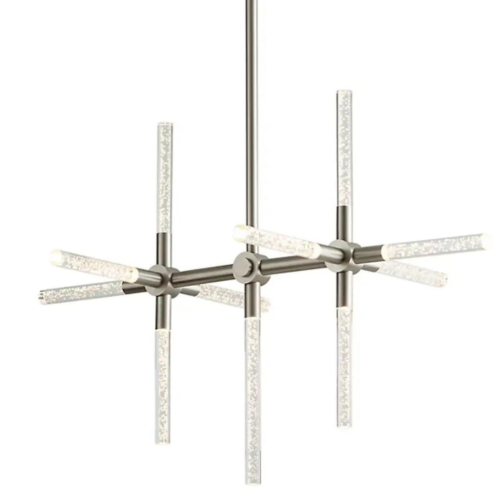Elevate the atmosphere of your modern space with the elegant, precise angles of the Tali LED Chandelier from Oxygen Lighting. With a geometric touch, this piece grabs the attention of the room with a pleasing contrast between metal and acrylic. A single thin downrod drops from the ceiling and splits into two distinct and equal parts, each side further extending rounded, glowing arms in each direction. The acrylic holds integrated and energy-efficient LEDs that emit a bright and soothing layer of light.