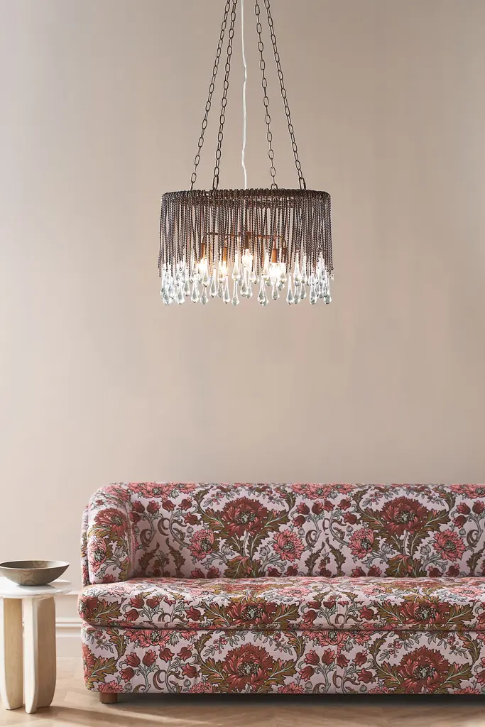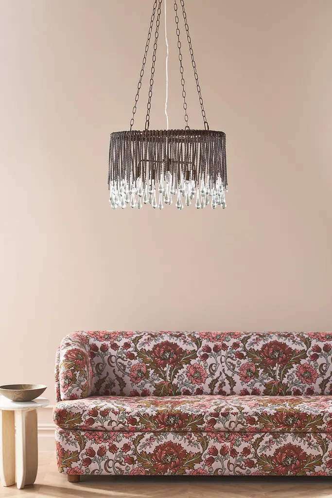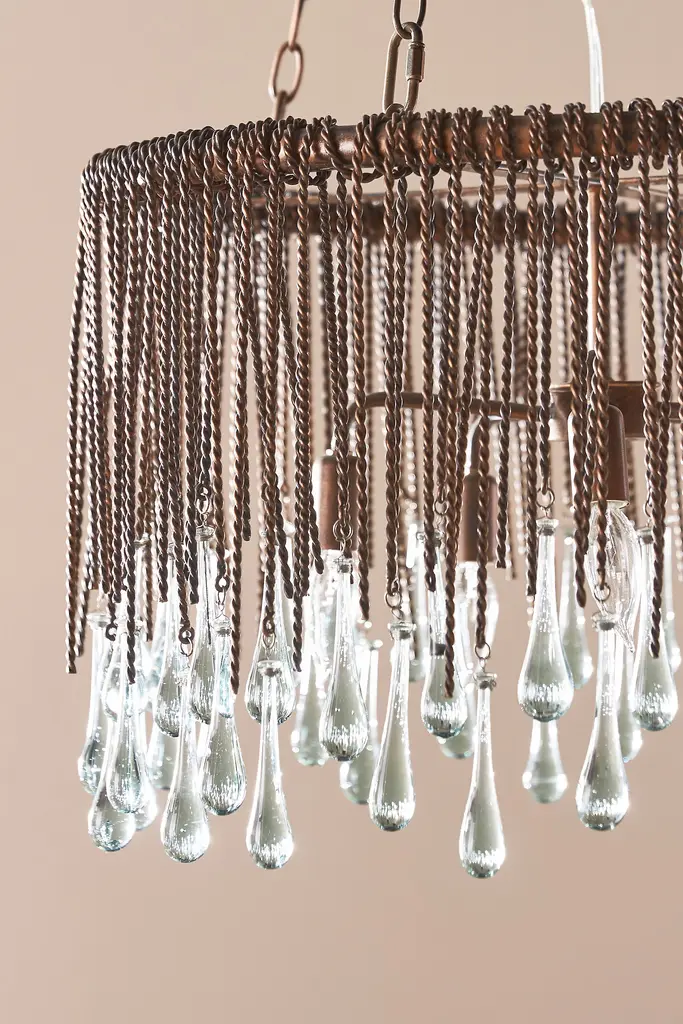 Twisted metal and tear-shaped glass mix the industrial with the organic for an exquisite focal point. This item is UL listed, meaning it has been tested and approved to meet the government-regulated safety standards for the USA. Use with electrical outlets 110-120v or lower, as anything higher can cause fire or injury. If you're purchasing this item for use outside of the United States, employ the adapter and voltage converter suited for your country.