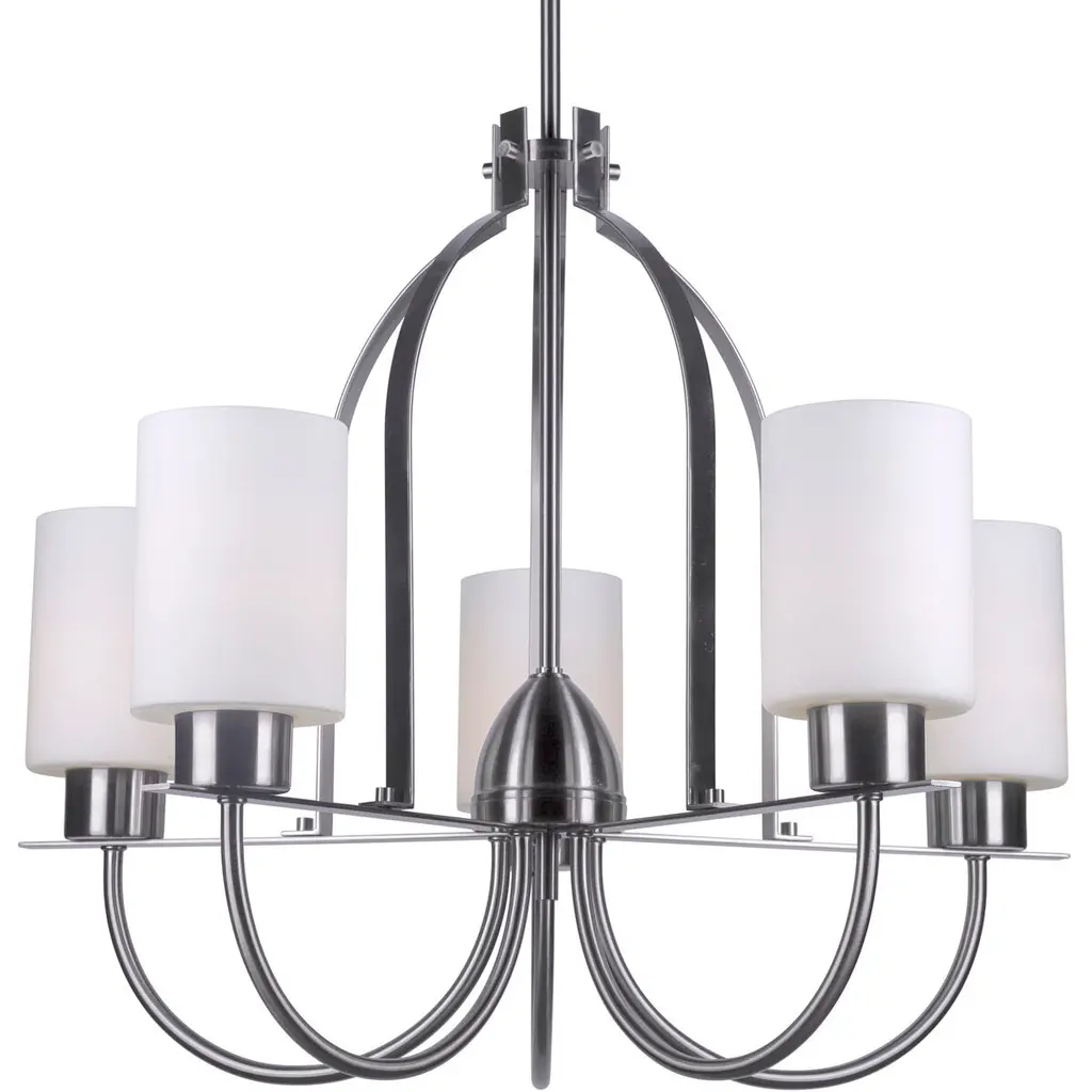 5-Light Brushed Nickel Chandelier with Satin White Glass Shade