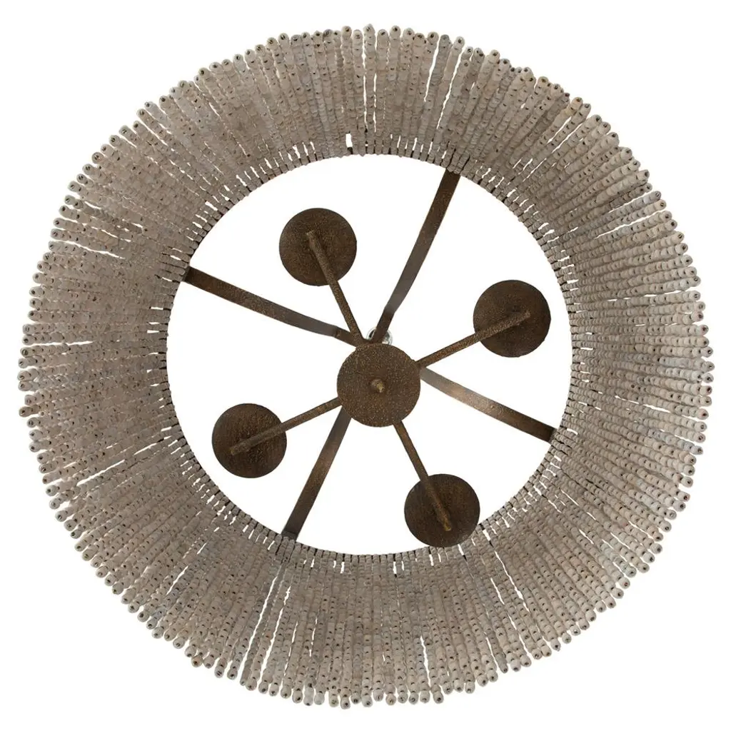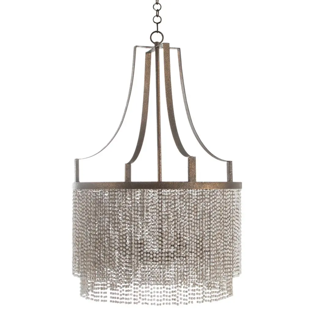 Tamara Mid Century White Beaded Wood Antique Gold Chandelier