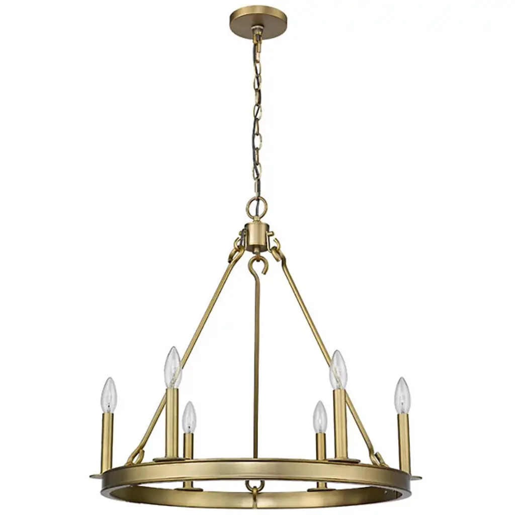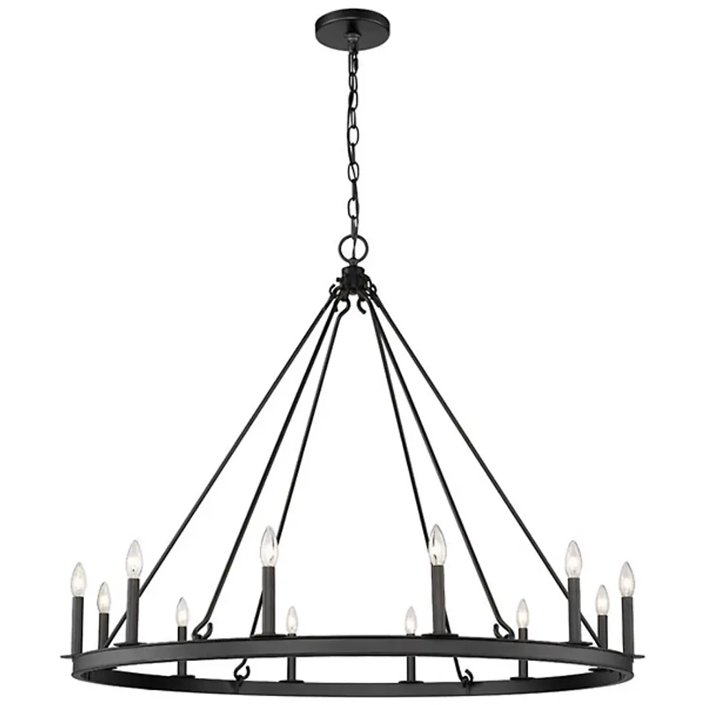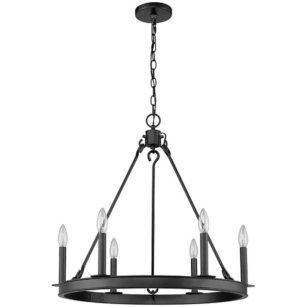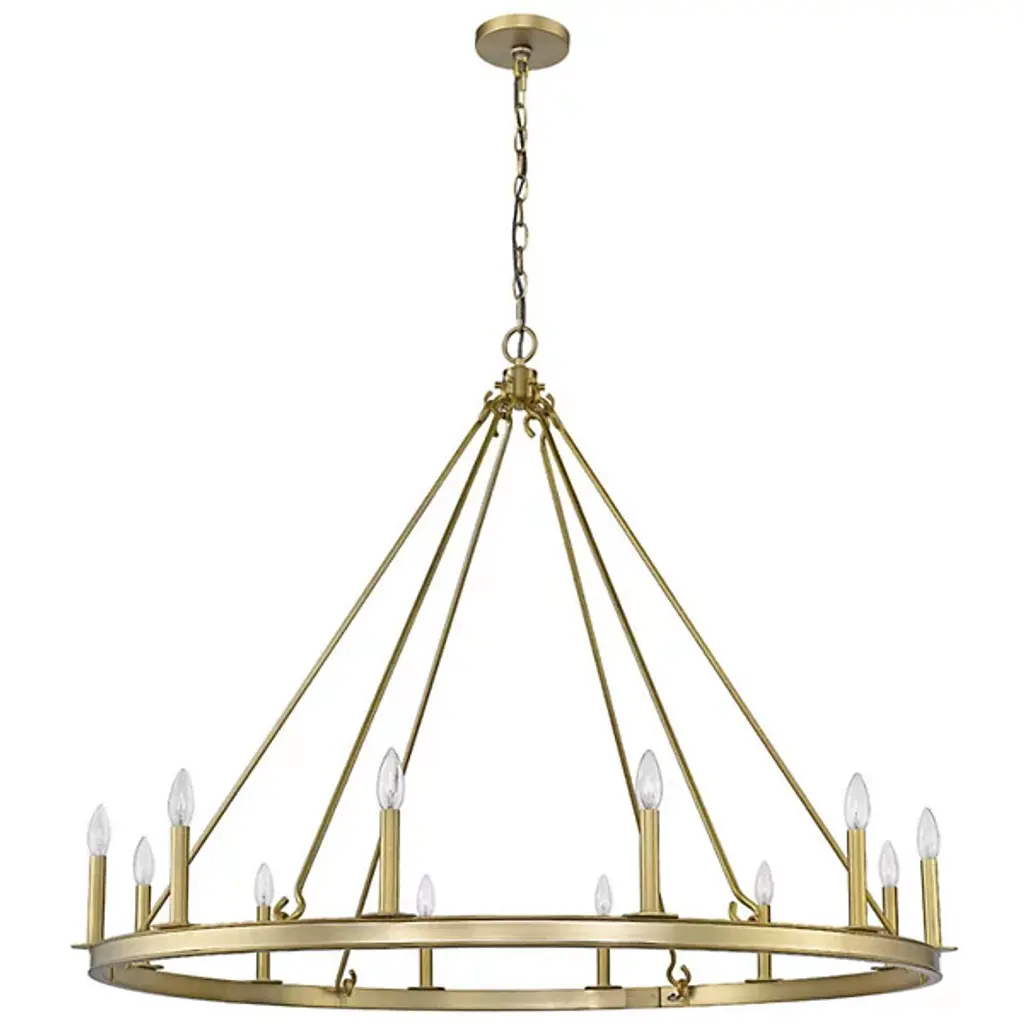 The Taylor Ring Chandelier from Alder & Ore boasts a ceiling canopy that secures a chain of links that gives way to a tapered hook, culminating in the form of a slender rod. Serving as a focal point, a ring-shaped frame of steel with cylindrical encasements house vibrant LED lights equidistantly spaced around the ring. The lovely candle-shaped lights suspended by the ring cast brilliant ambient light throughout your environment.