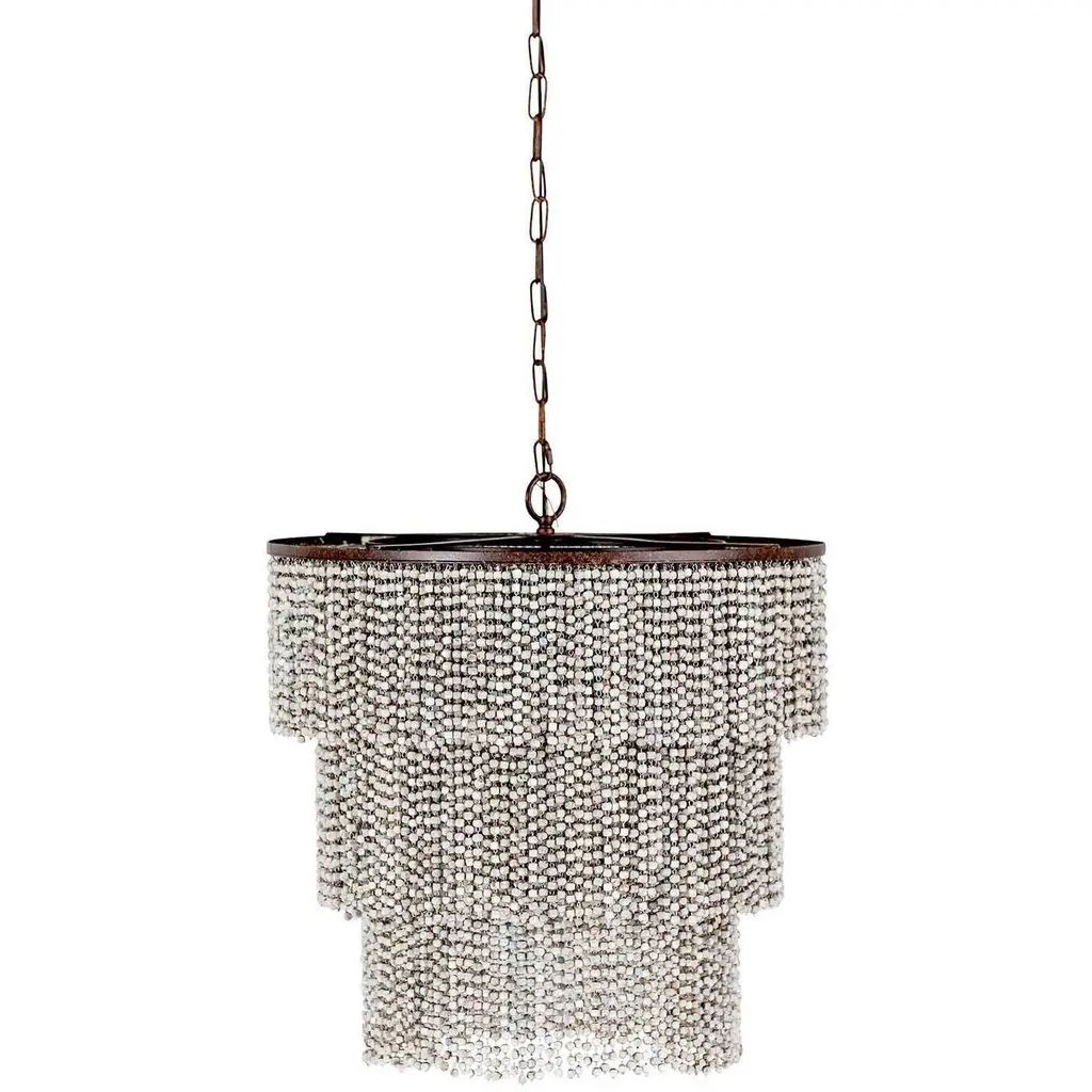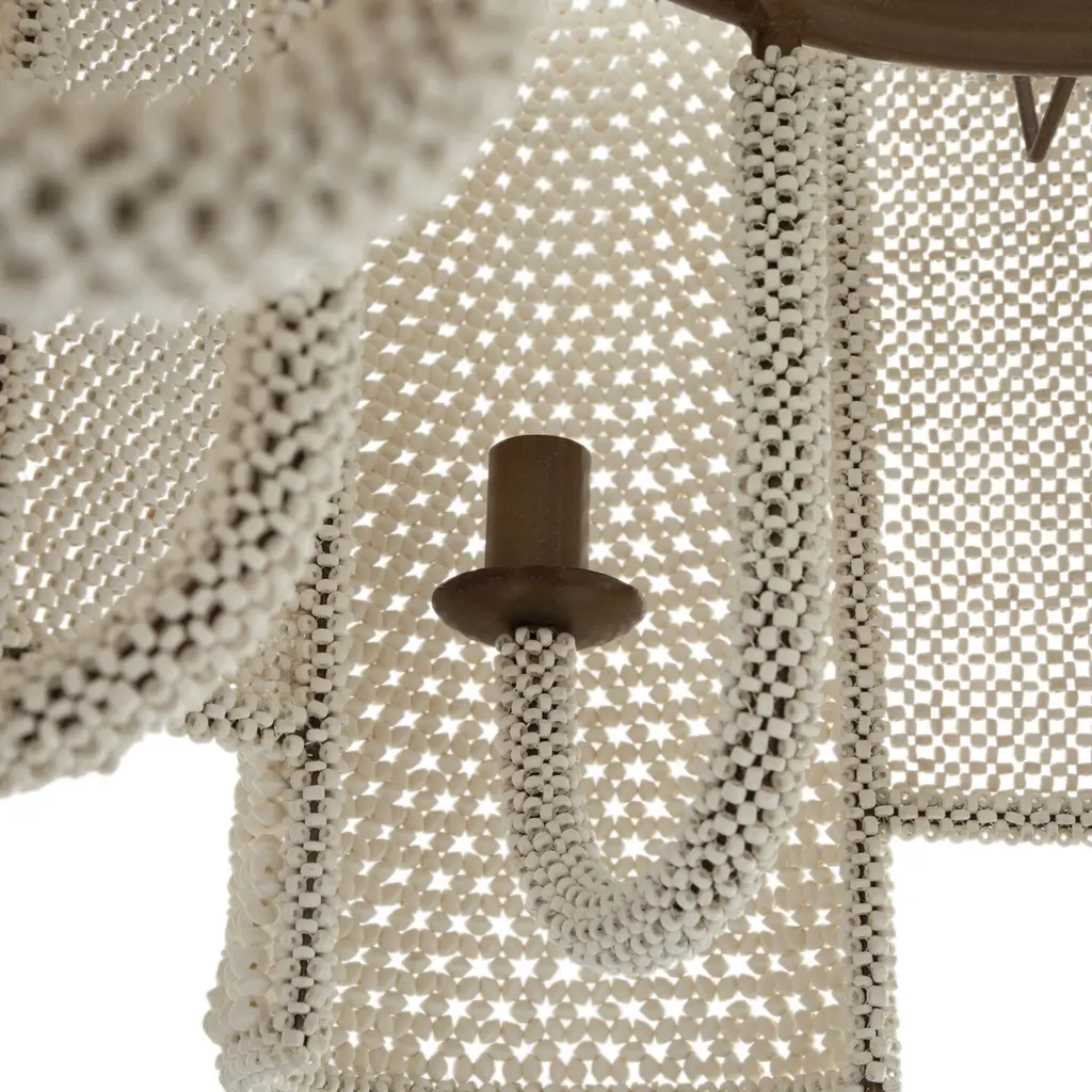 The Teagan Chandelier is a remarkable display of craftsmanship and design, created by skilled women artisans using sustainably sourced, sun-dried coconut shells. Each bead is hand-shaped and assembled to form a mesmerizing pattern, resulting in a piece that is both unique and captivating. Featuring a bold, multi-cylinder silhouette, the Teagan Chandelier offers a modern twist on traditional beaded designs. Its intricate structure adds depth and texture, making it a striking centerpiece for dining rooms, living areas, or entryways. The warm, neutral tones of the natural materials allow this chandelier to seamlessly blend with a variety of interior styles, from coastal chic to contemporary elegance. Beyond its aesthetic appeal, the Teagan Chandelier celebrates sustainable practices and empowers artisan communities. Its timeless design and commitment to eco-friendly craftsmanship make it more than just a light fixtureits a work of art that brings warmth, character, and purpose to your space.