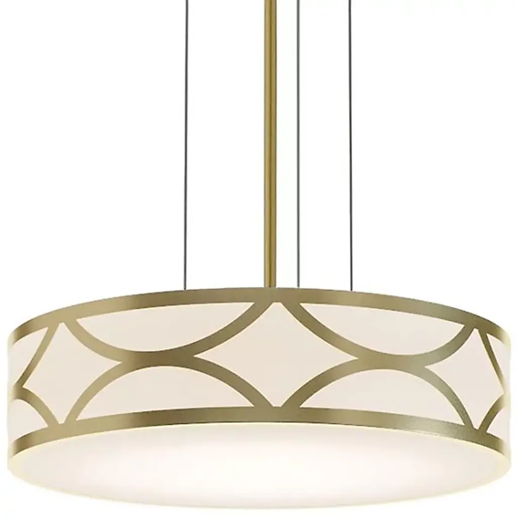 Tempest Drum with Linen Shade-18-Gilded Brass-Threaded Rod Suspension-E26