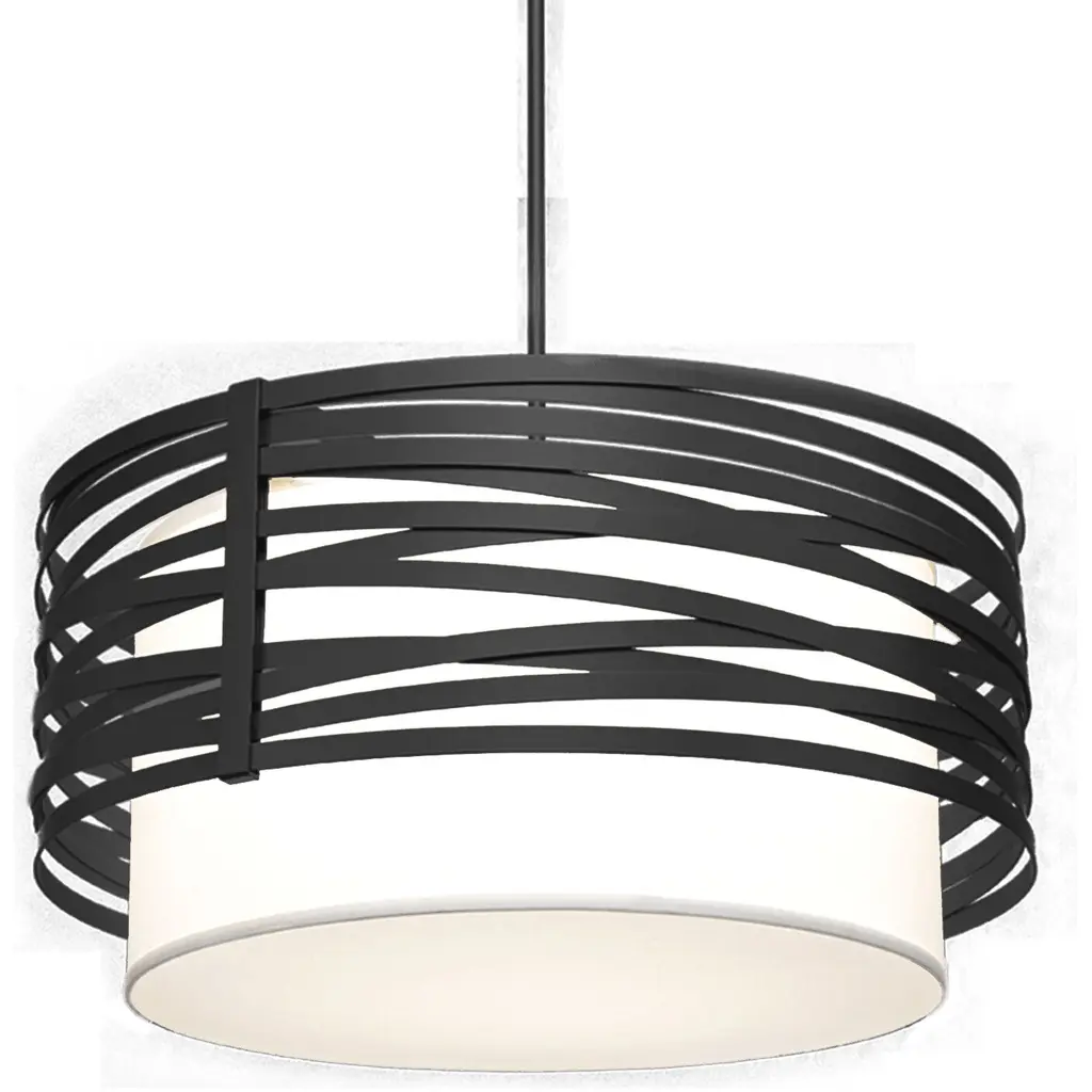 Tempest 1 Light 30.2 Inch Matte Black Chandelier Ceiling Light In White Linen, Drum