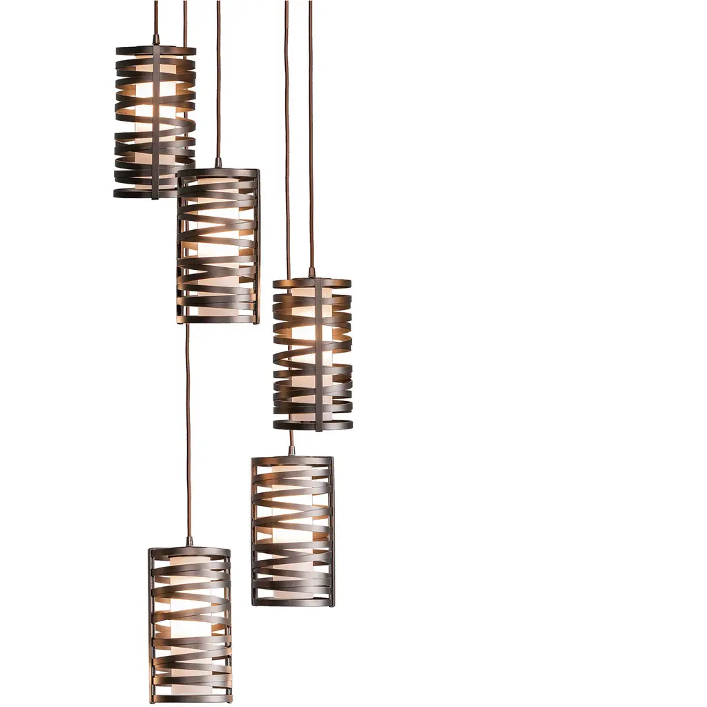 Tempest Round Multi-Port-05-Gilded Brass-Frosted Glass-Brass Cloth Braided Cord-LED