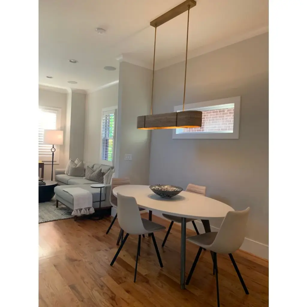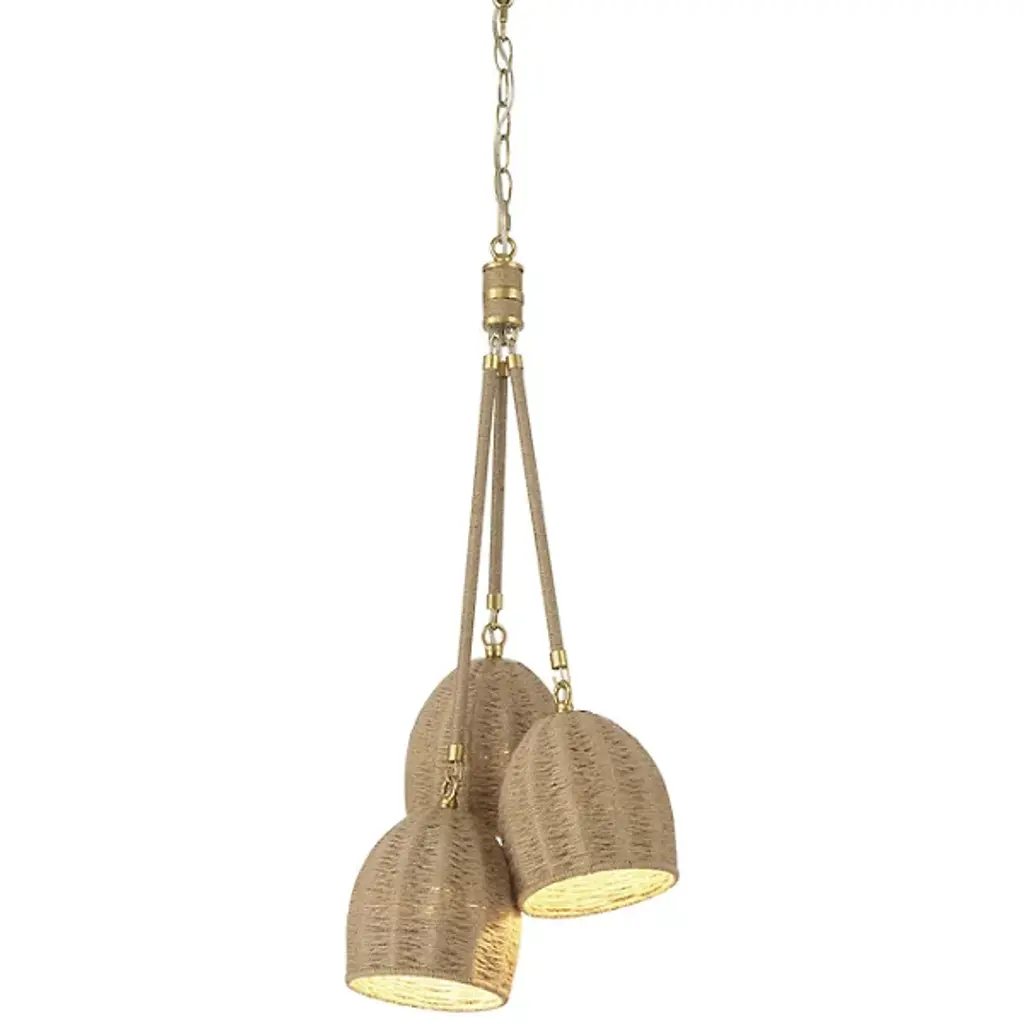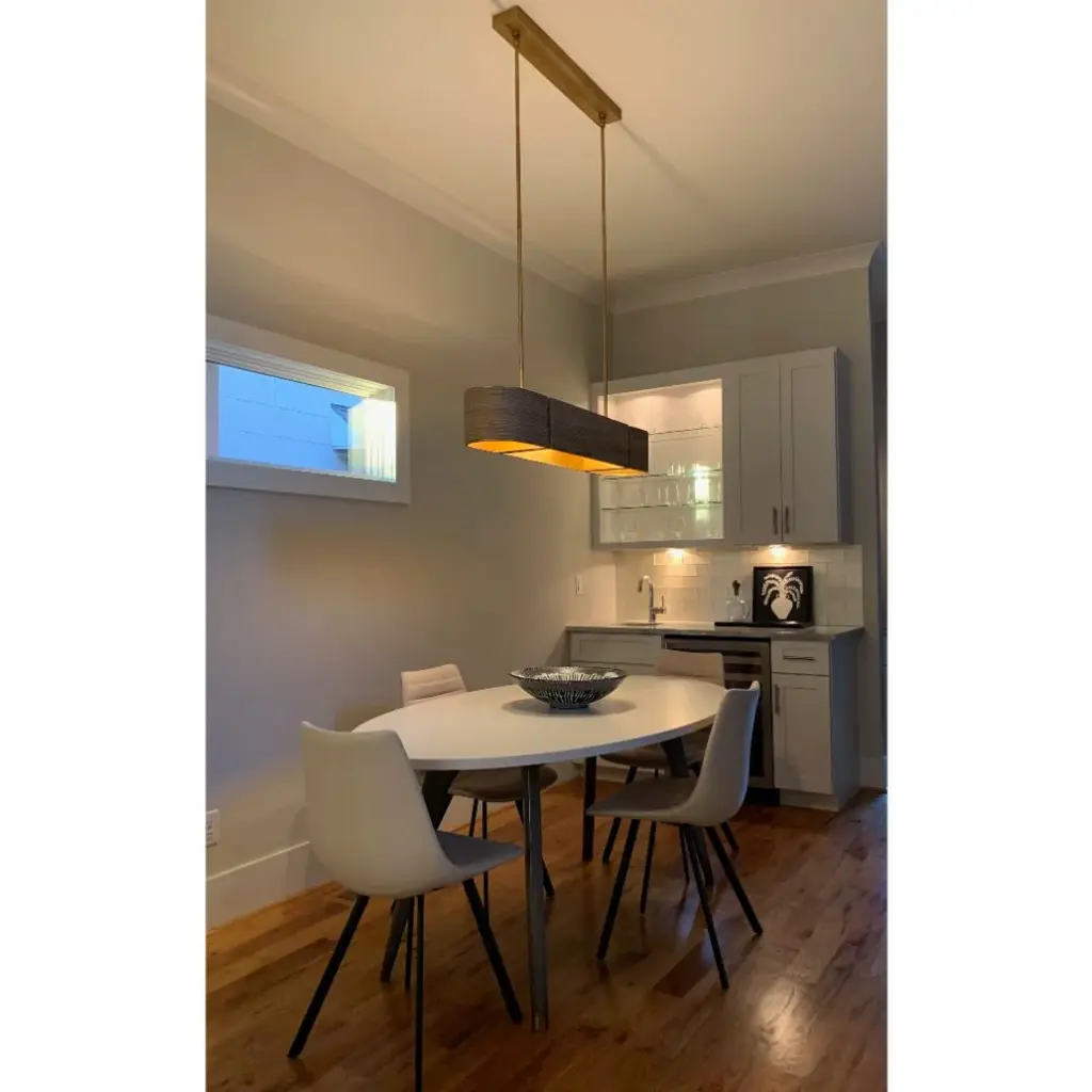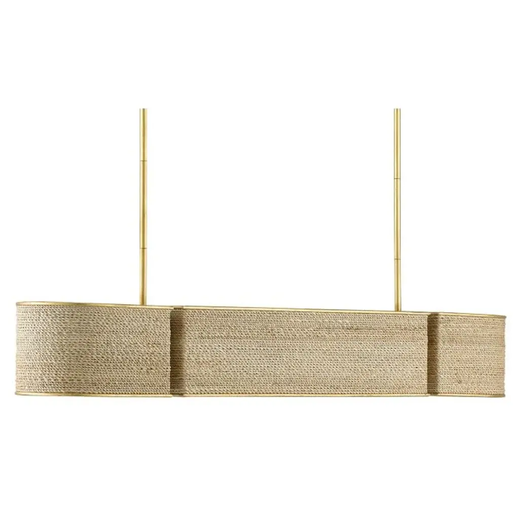 The juxtaposition between the natural abaca rope and gilded gold structure of this stunning 4 light oval chandelier provides a visual masterpiece that is sure to turn heads. Its unique construction creates an illusion of three floating pieces, while the warm tones add a wonderful ambience to your home.