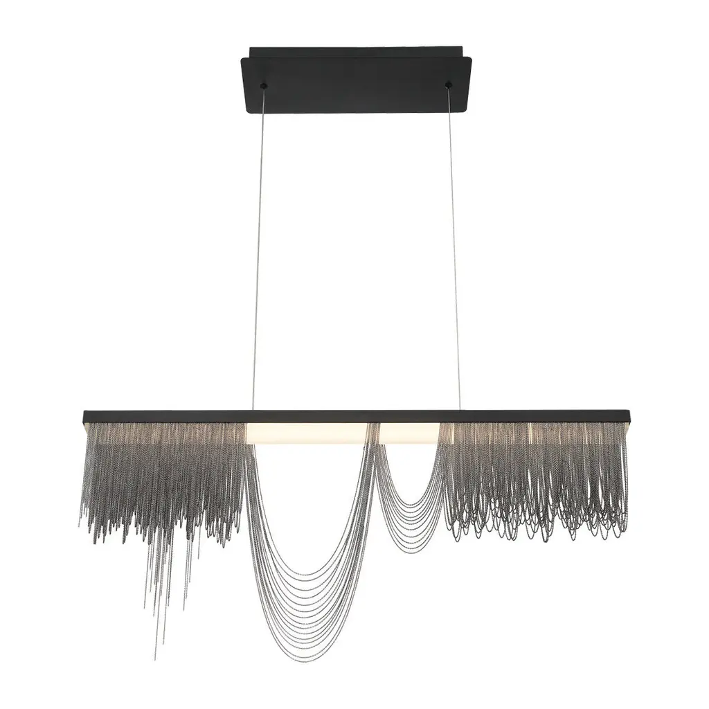 LED Chandelier, Painted Brushed Black + Gun Black Chains