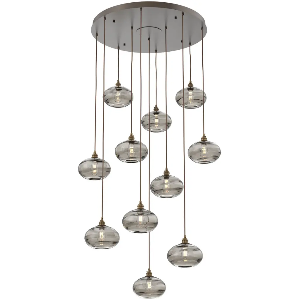 Terra Square Multi-Port-12-Flat Bronze-Optic Blown Glass - Smoke-Bronze Cloth Braided Cord-E26