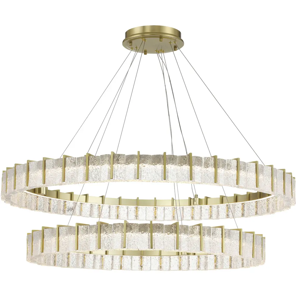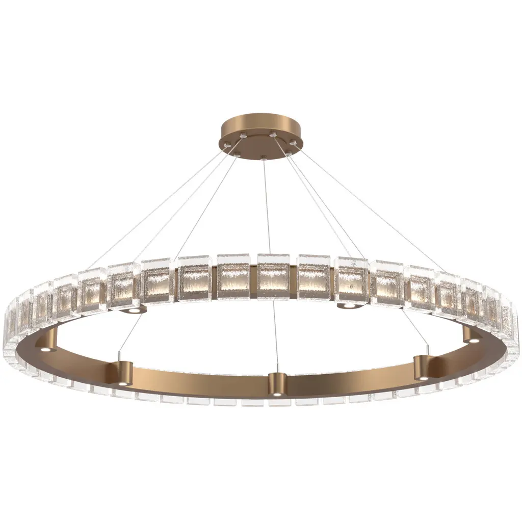 Tessera 38" & 50" Two-Tier Ring-Burnished Bronze-Pav? Cast Glass-Stainless Cable-LED 3000K