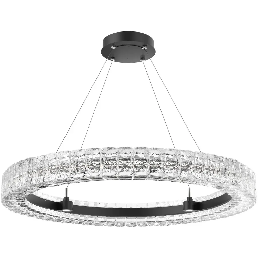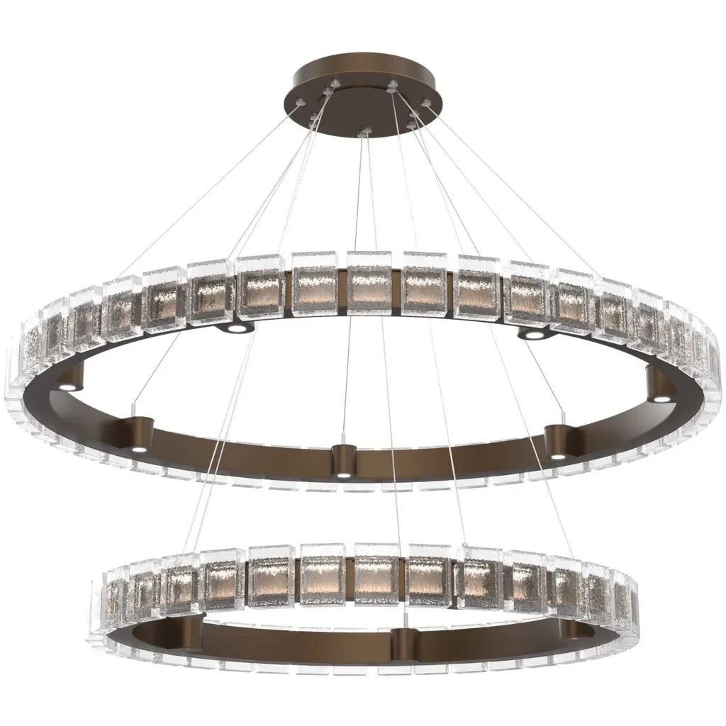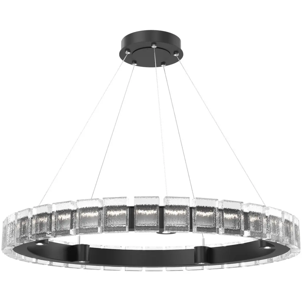 Tessera 38" & 50" Two-Tier Ring-Matte Black-Pav? Cast Glass-Stainless Cable-LED 3000K