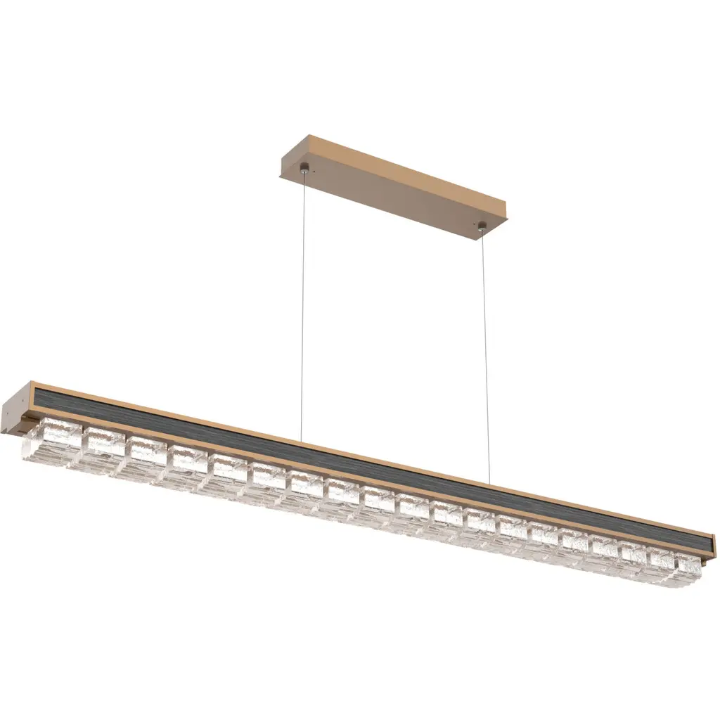 The 2,500-year old art of glass mosaic tiling is brilliantly brought to light in the modern-styled Tessera Linear Chandelier. Choose from five tile motifs in artisan cast crystal glass, two wood-inspired accent motifs, and several finishes. Tessera fixtures are illuminated with 93 CRI integrated LED and are available in 2700K or 3000K color temperature.