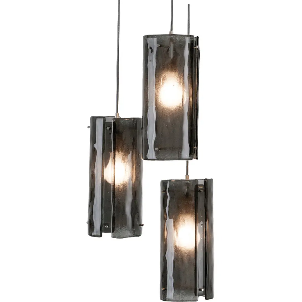 Textured Glass Round Multi-Port-08-Burnished Bronze-Granite Glass - Frosted-Bronze Cloth Braided Cord-E26