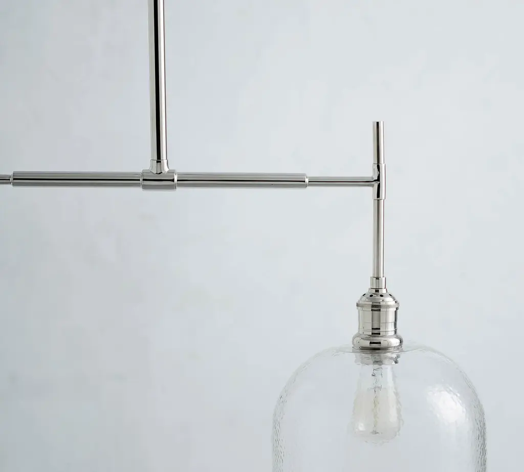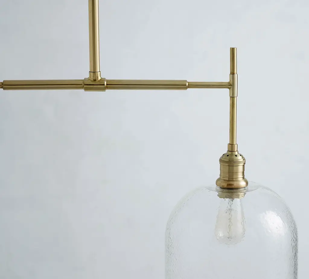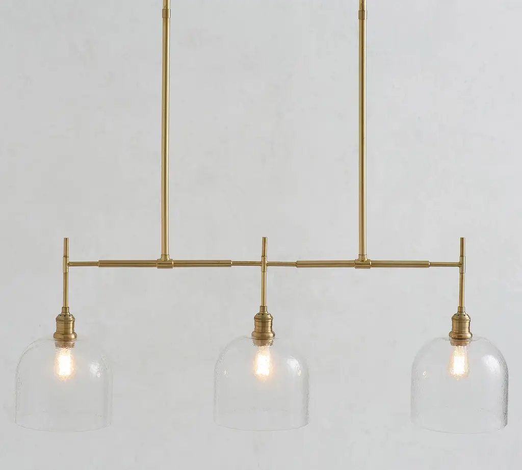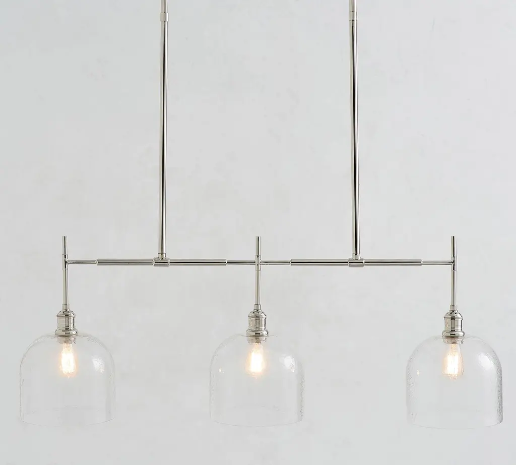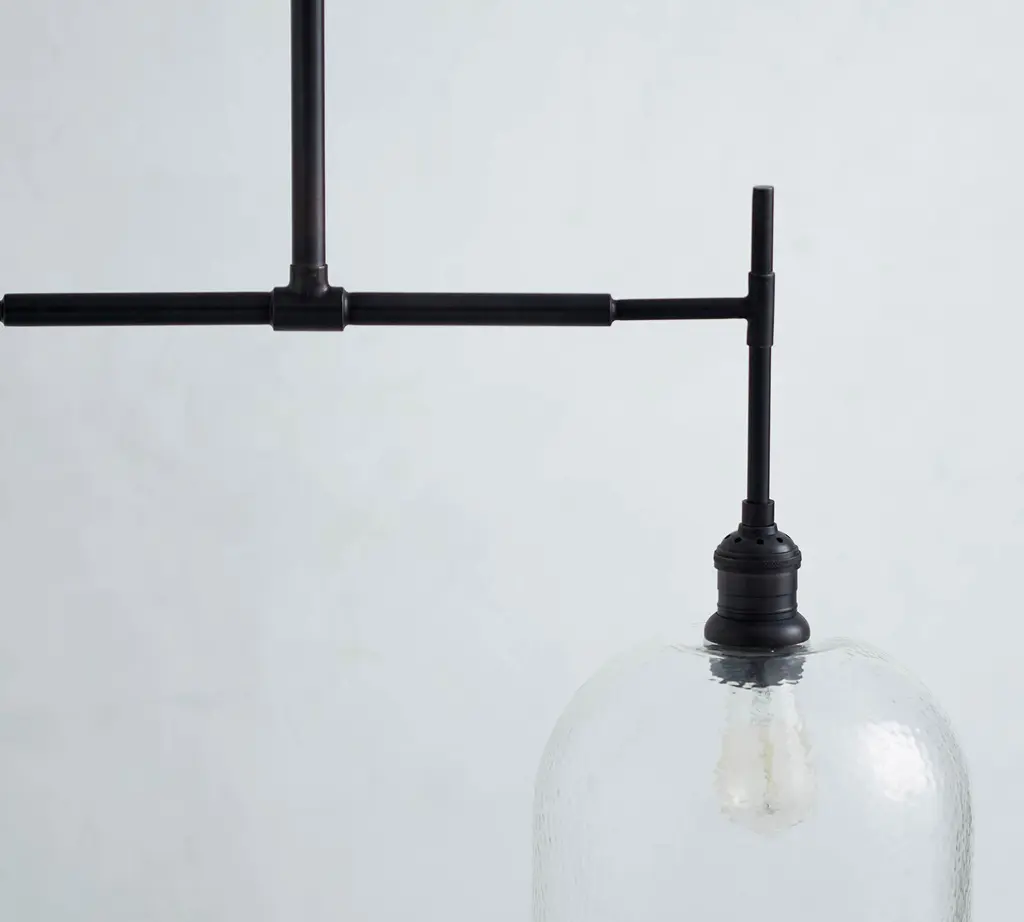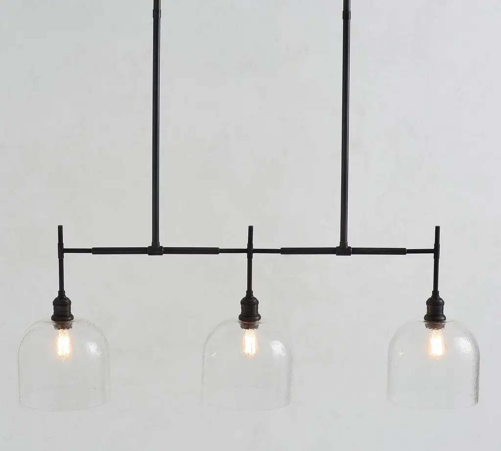 Textural glass shades bring softened warmth to this fresh take on factory-style lighting. With adjustable rod options, our Custom Textured Glass Linear Chandelier is offered in your choice of finish so you can design the style that works best in your space.