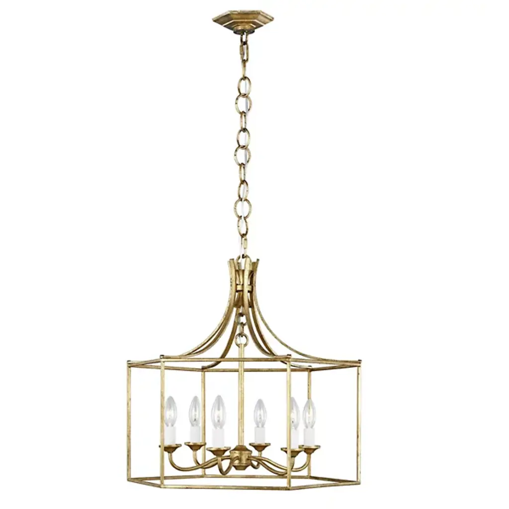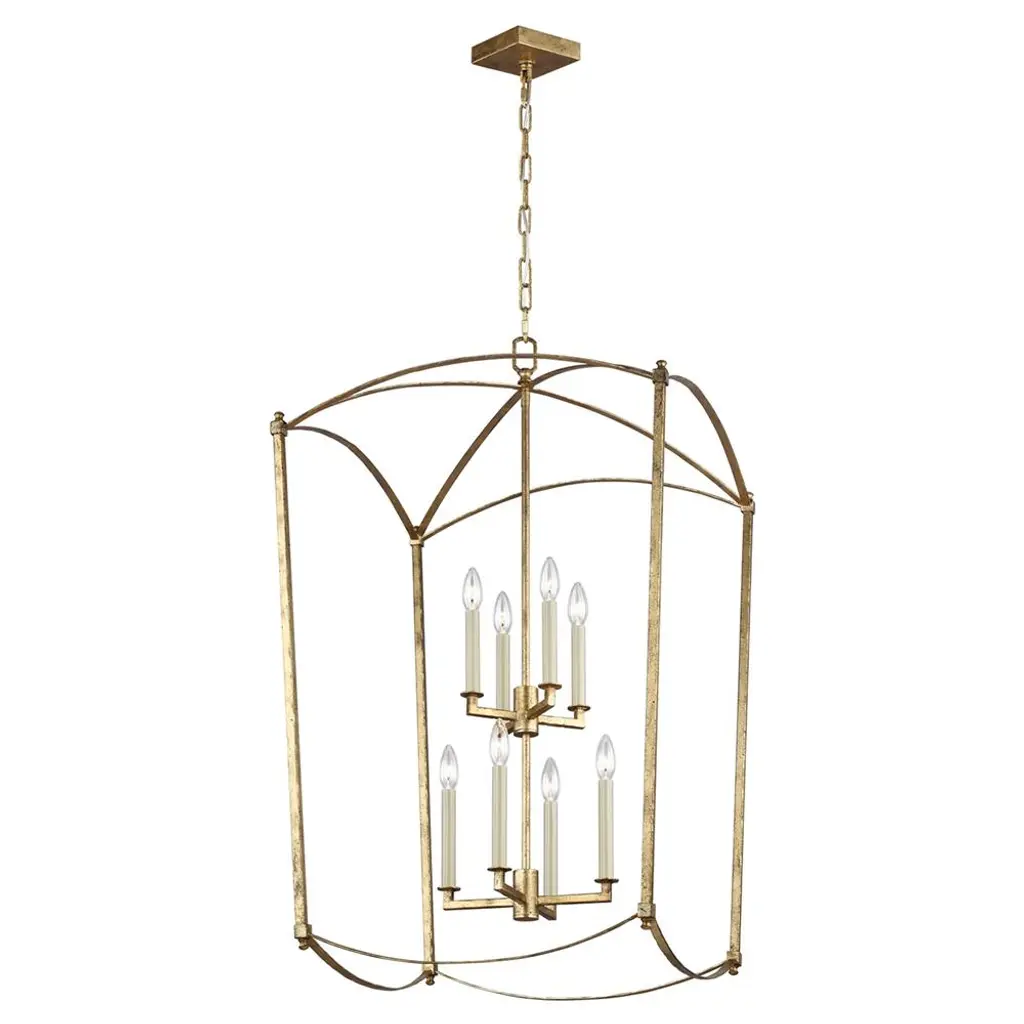 Let its graceful lantern-inspired contours set up an ambiance of warmth and comfort over your kitchen island or foyer. The Thayer Chandelier from Visual Comfort Studio, formerly known as Sean Lavin, gives off a familiar feel, spruced up by stylish, boutique-like flair. Its open-air construction sets it apart, allowing the lines and colors of a room to dictate the shapes of the piece. Sleek metal contours in vertical and arching segments, hint at the tapered quality and the hood of the classic lantern. In beautiful symmetry at the center, candle-style lamp holders with candelabra bulbs help to generate a gracious and inviting glow.