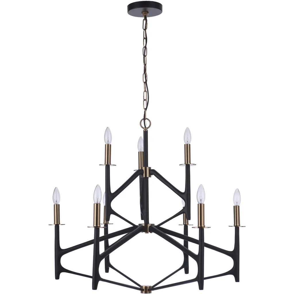 The Reserve 9 Light 32.25 Inch Matte White/satin Brass Chandelier Ceiling Light, 2-Tier