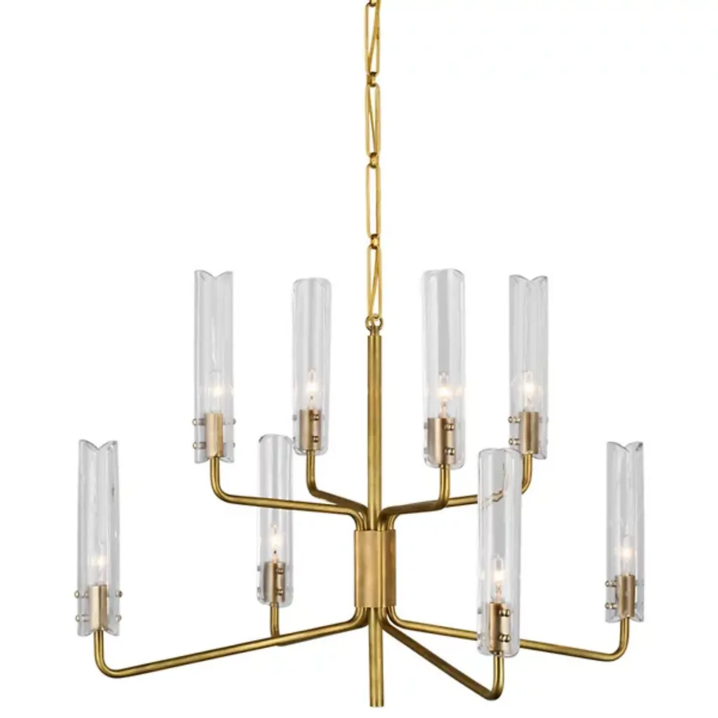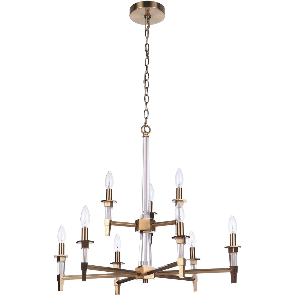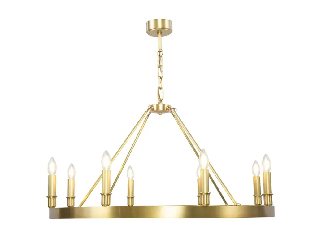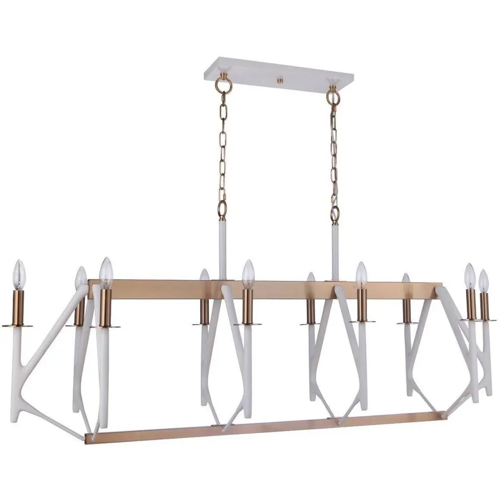 Symmetrical arches in a rich matte white finish accented with warm satin brass details create The Reserve collection that delivers impressive style. This stately collection includes a four, six and ten light chandelier, two light wall sconce and 10 light island fixture.