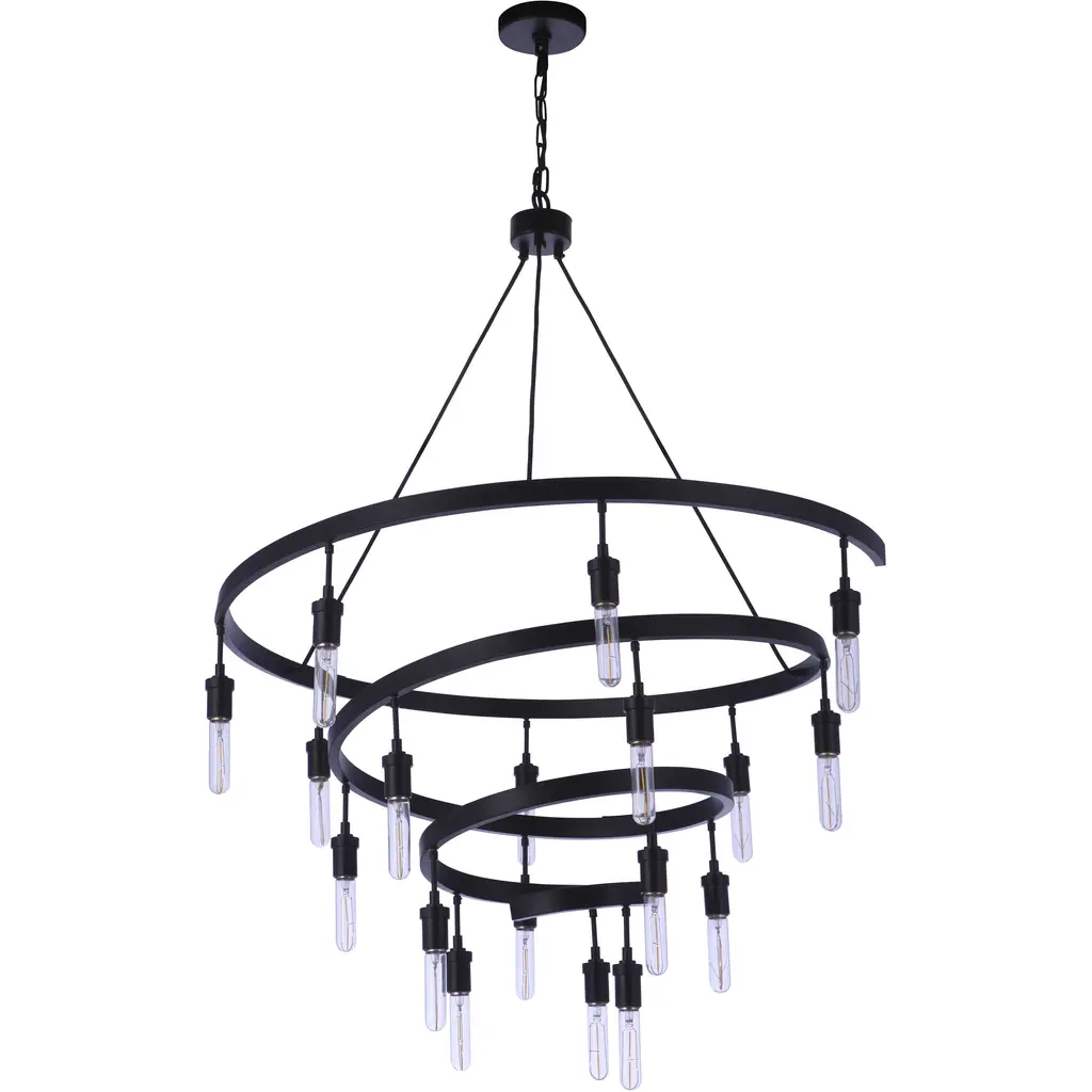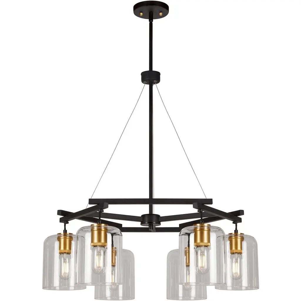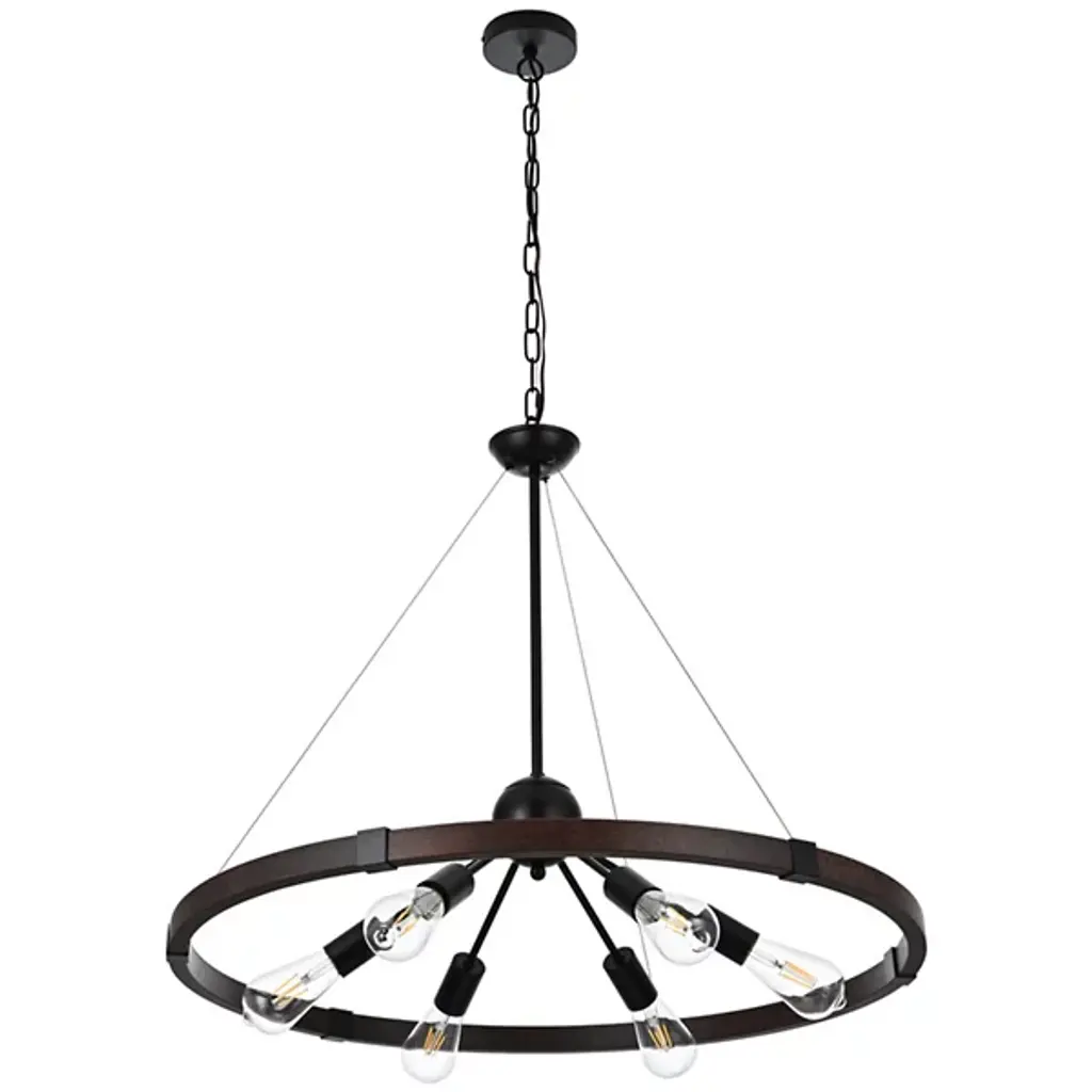 The Thera Chandelier from Huxe captures Mid-Century Modern and Transitional styles with its retro Sputnik-style design. A unique and memorable design suspended from a circle canopy by chain and then a rod, it sends wires down to a ring accent around open lamping. The durable iron construction ensures lasting quality and adds to its rugged industrial appeal to its otherwise retro aesthetic. At the same time, the fixture is also ETL-certified for safety, making it both stylish and reliable for high-ceilinged interiors.