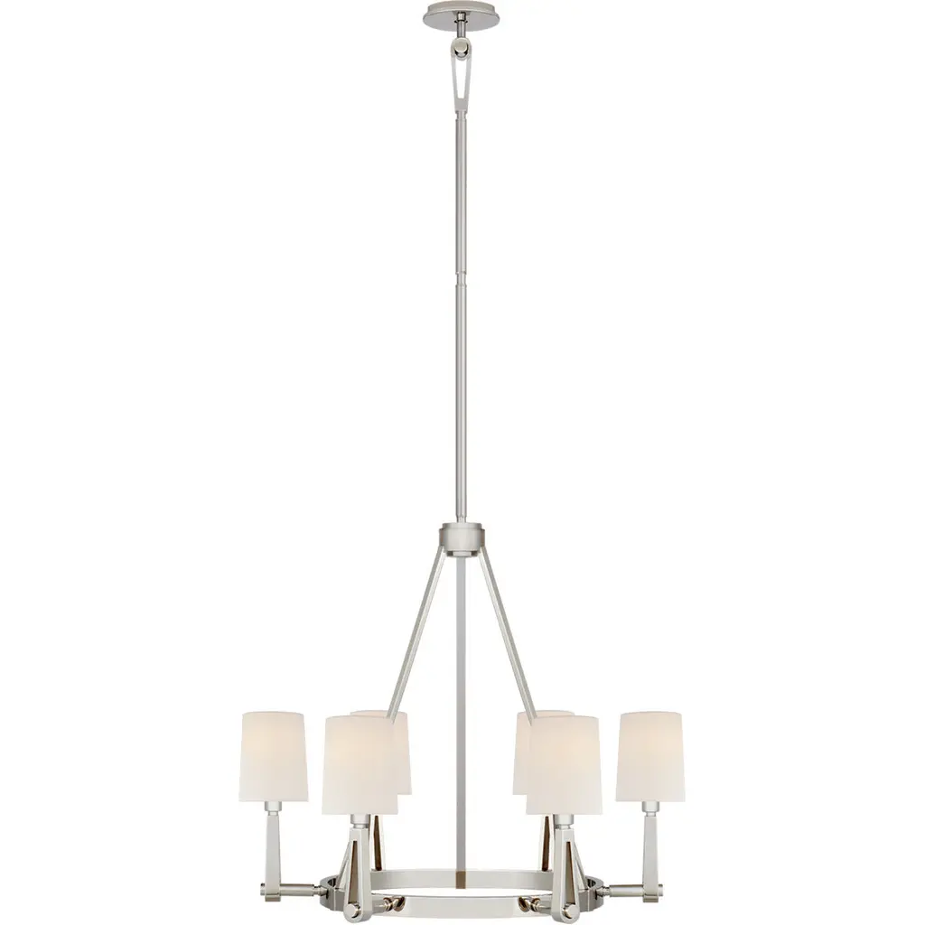 Thomas O'brien Alpha 6 Light 30 Inch Hand-Rubbed Antique Brass And Bronze Chandelier Ceiling Light In Linen, Medium