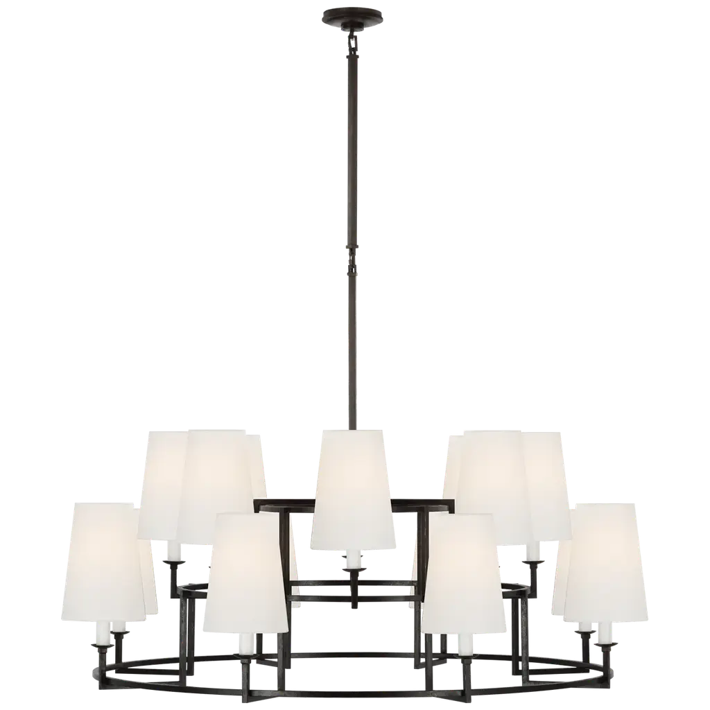 Bryant Extra Large Two Tier Chandelier in Bronze with Linen Shades