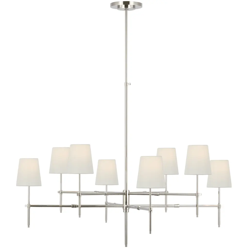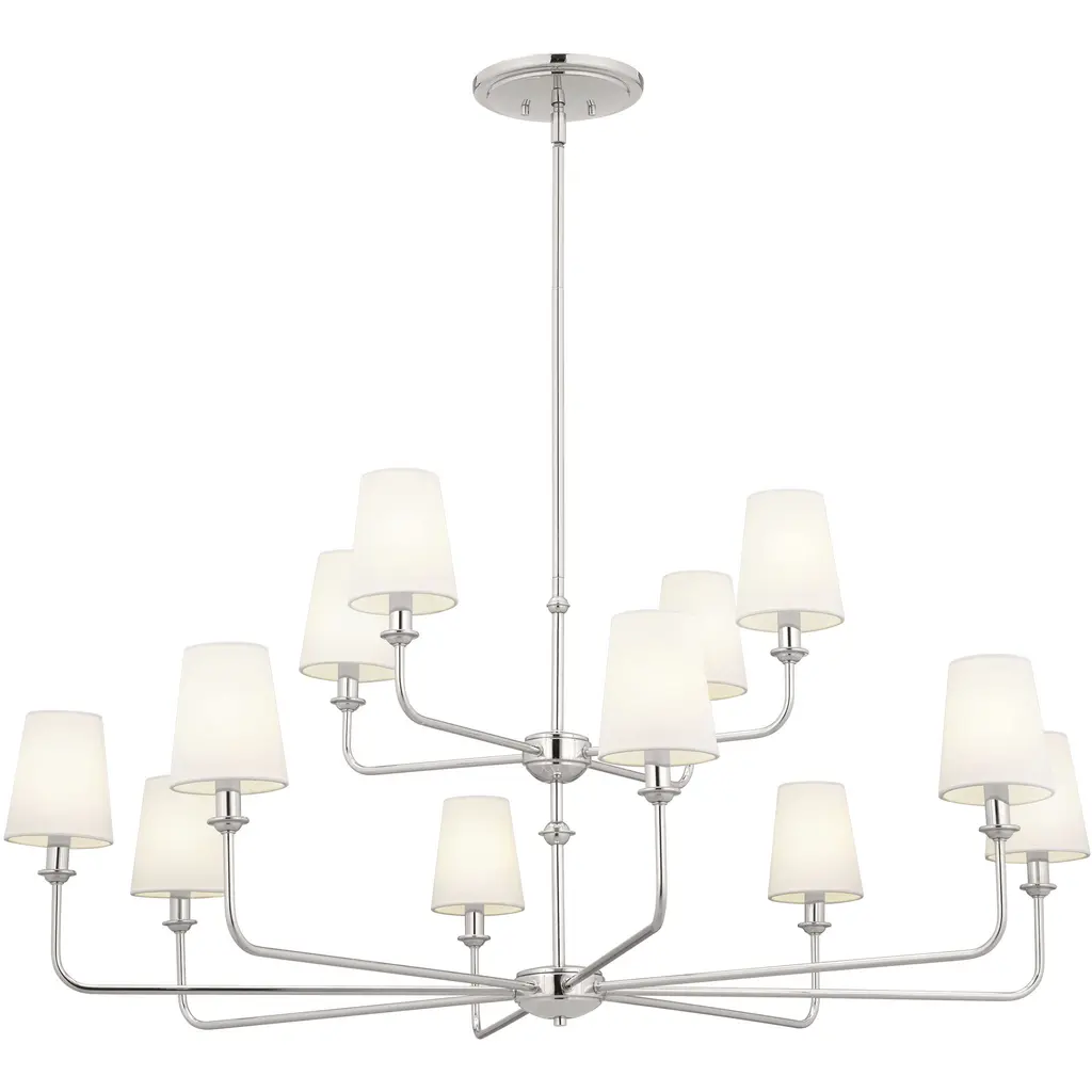 Bryant Extra Large Two Tier Chandelier in Polished Nickel with Linen Shades
