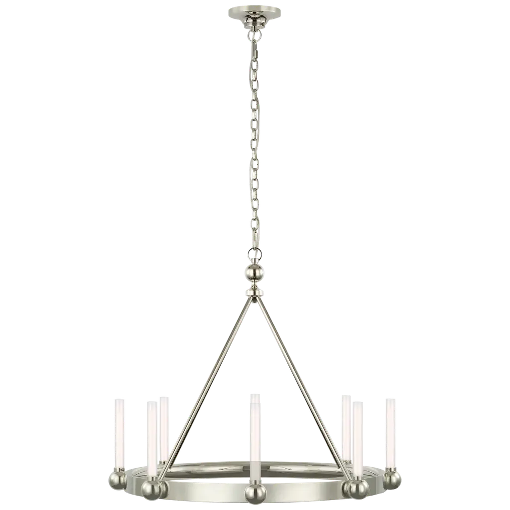 Thomas O'brien For Visual Comfort Signature Jeffery Medium Ring Chandelier In Polished Nickel With White Glass
