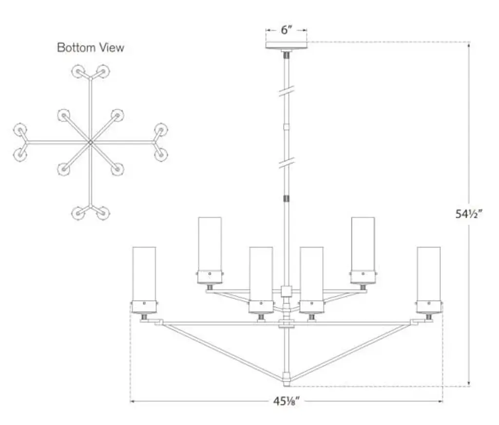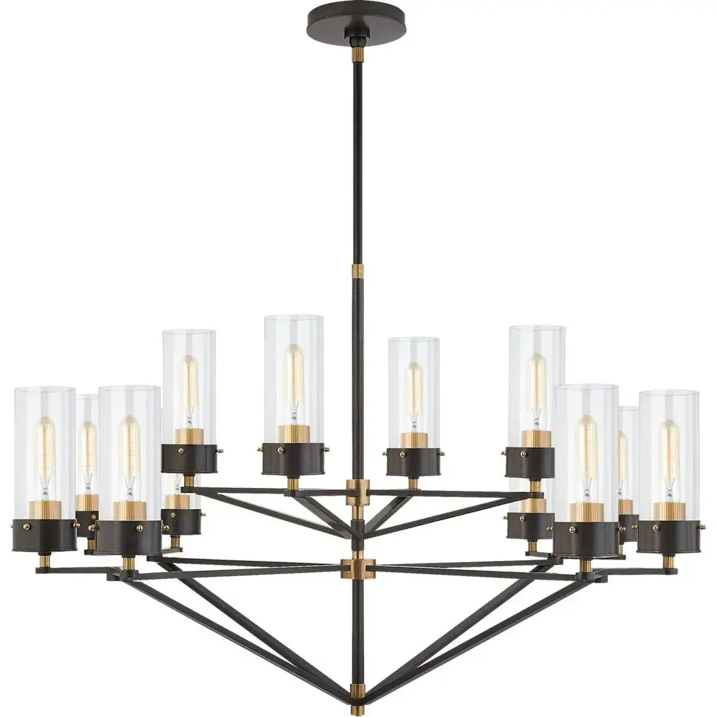Marais Large Chandelier in Bronze and Hand-Rubbed Antique Brass with Clear Glass Designer: Thomas O'Brien Fixture Height: 26.75" Min. Custom Height: 38" O/A Height: 54.5" Canopy: 6" Round Mounting: Rod Shade Detail: Clear Glass Socket: 12 - E12 Candelabra Wattage: 12 - 60 C11 Safety Rating Location: Damp