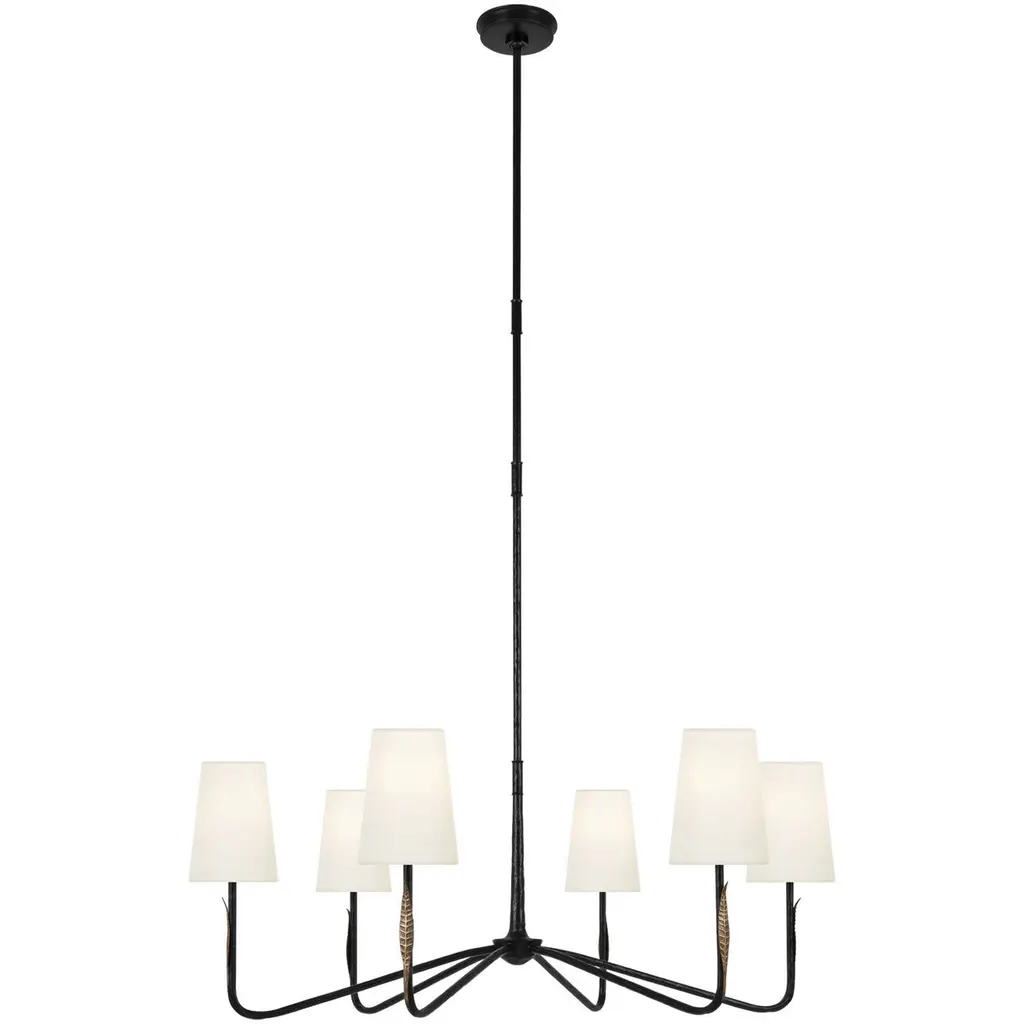 Kairos 40" Chandelier in Aged Iron and Roman Bronze with Linen Shades