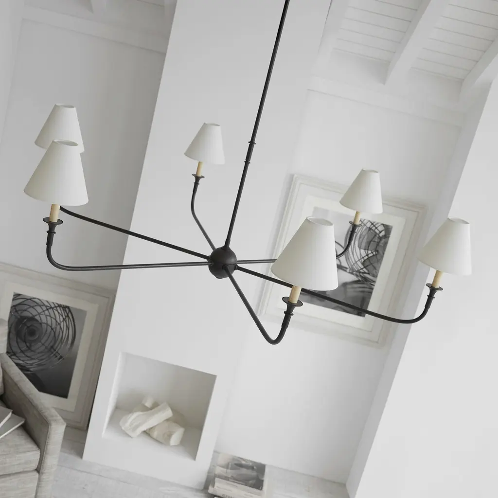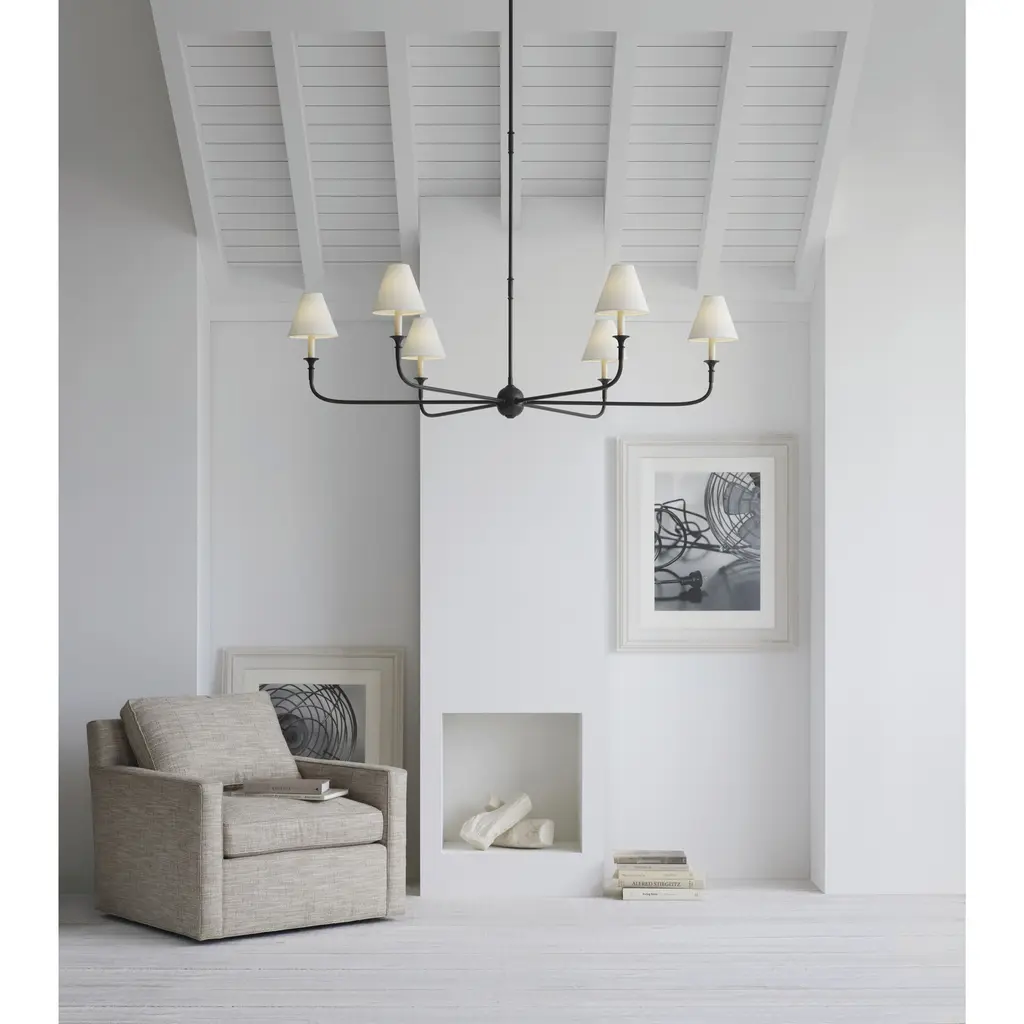Thomas O'brien Piaf 6 Light 58 Inch Aged Iron And Ebonized Oak Chandelier Ceiling Light, Grande