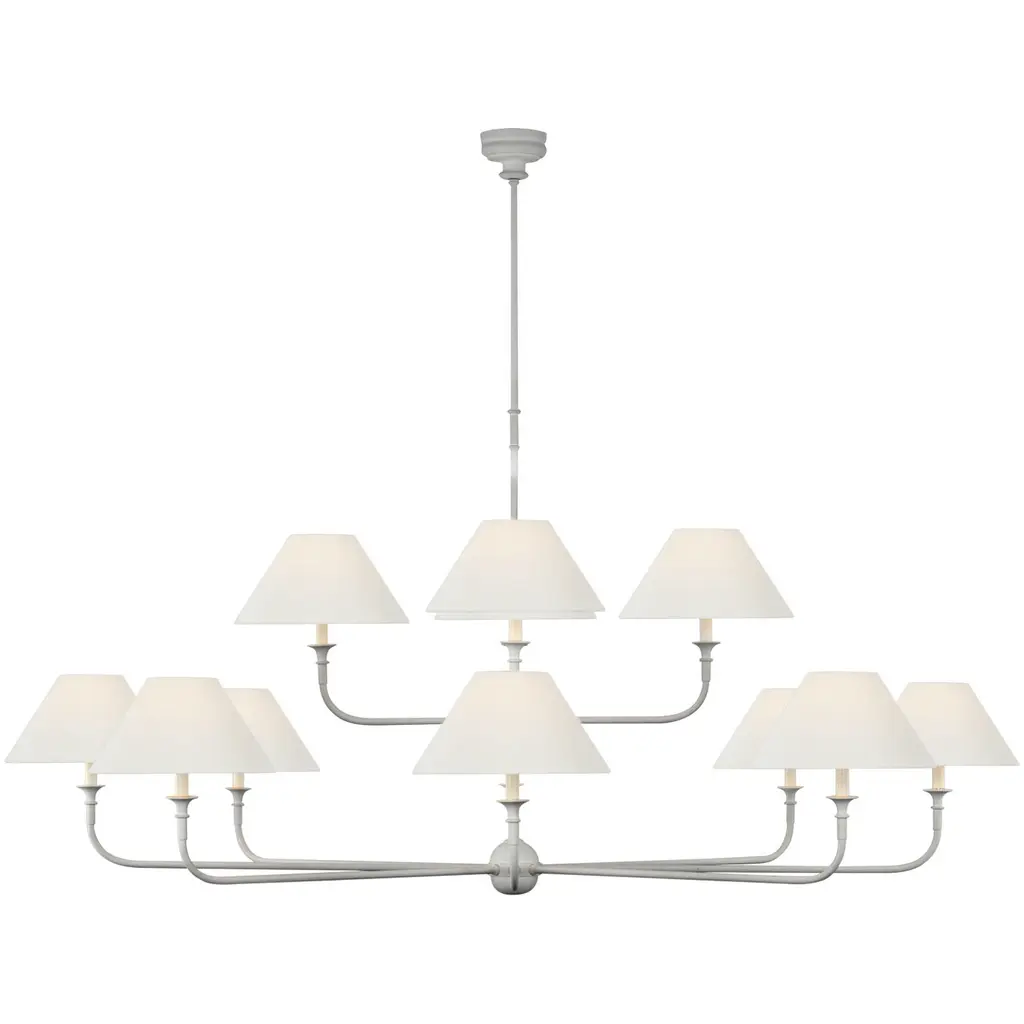 Piaf Oversized Two Tier Chandelier in Aged Iron and Ebonized Oak with Linen Shades