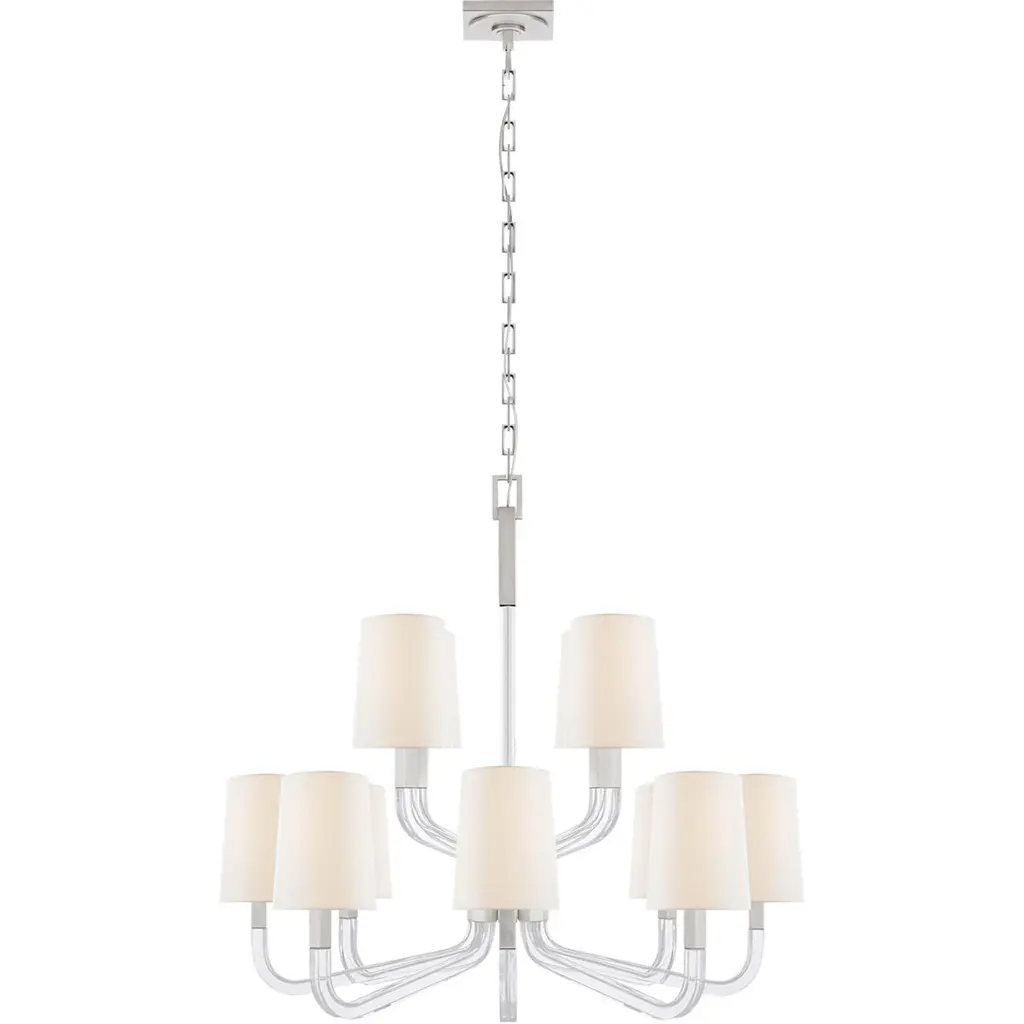 Vivian Mini Chandelier in Polished Nickel with Linen Shades