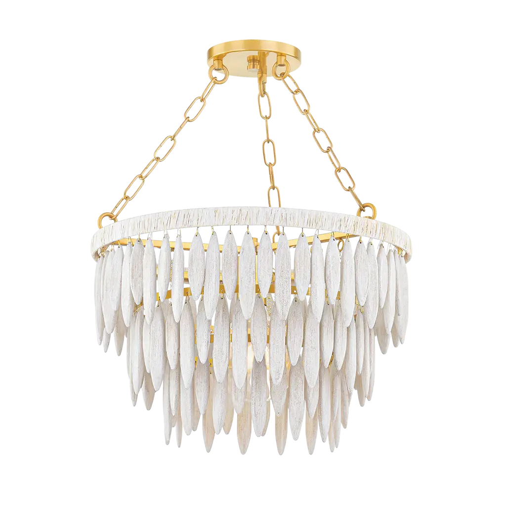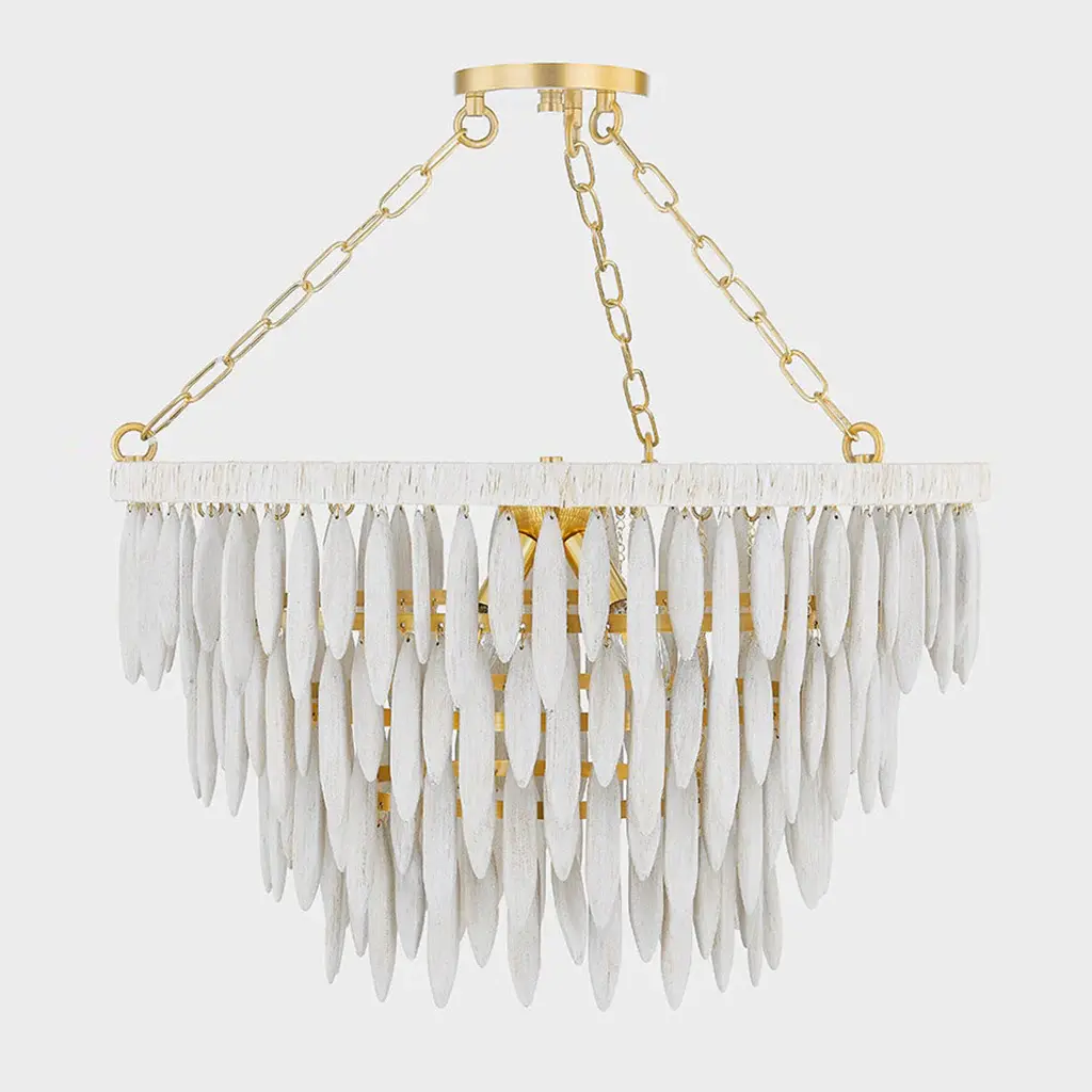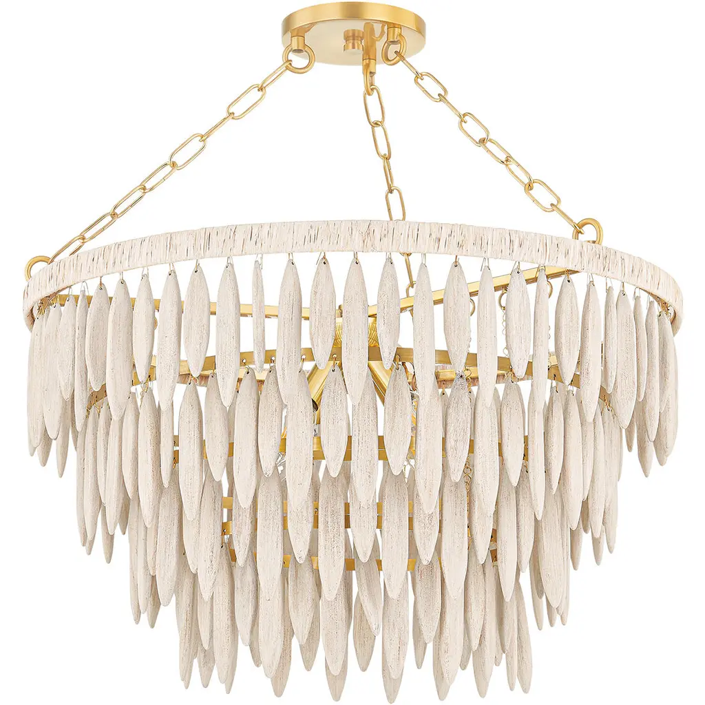 Introduce a touch of elegance and luxury into your home with the Tiffany Chandelier from Mitzi by Hudson Valley. The elevated organic design features elongated white-washed wood beads and an Aged Brass framework, creating a sculptural form. Topped with white raffia, this chandelier exudes a fresh and coastal feel, perfect for adding a touch of organic charm to any space. Highlights