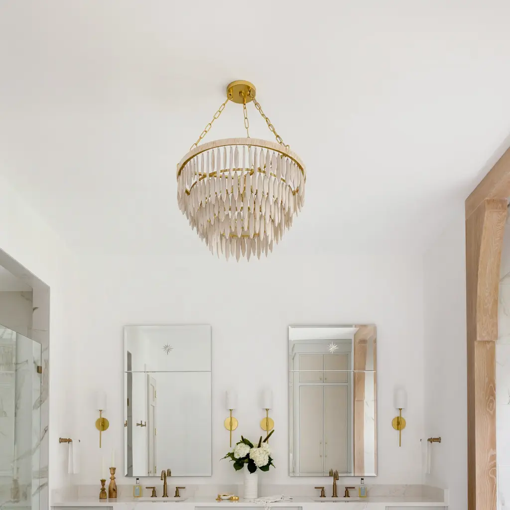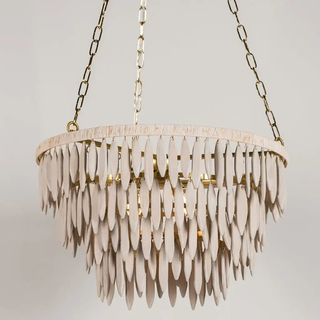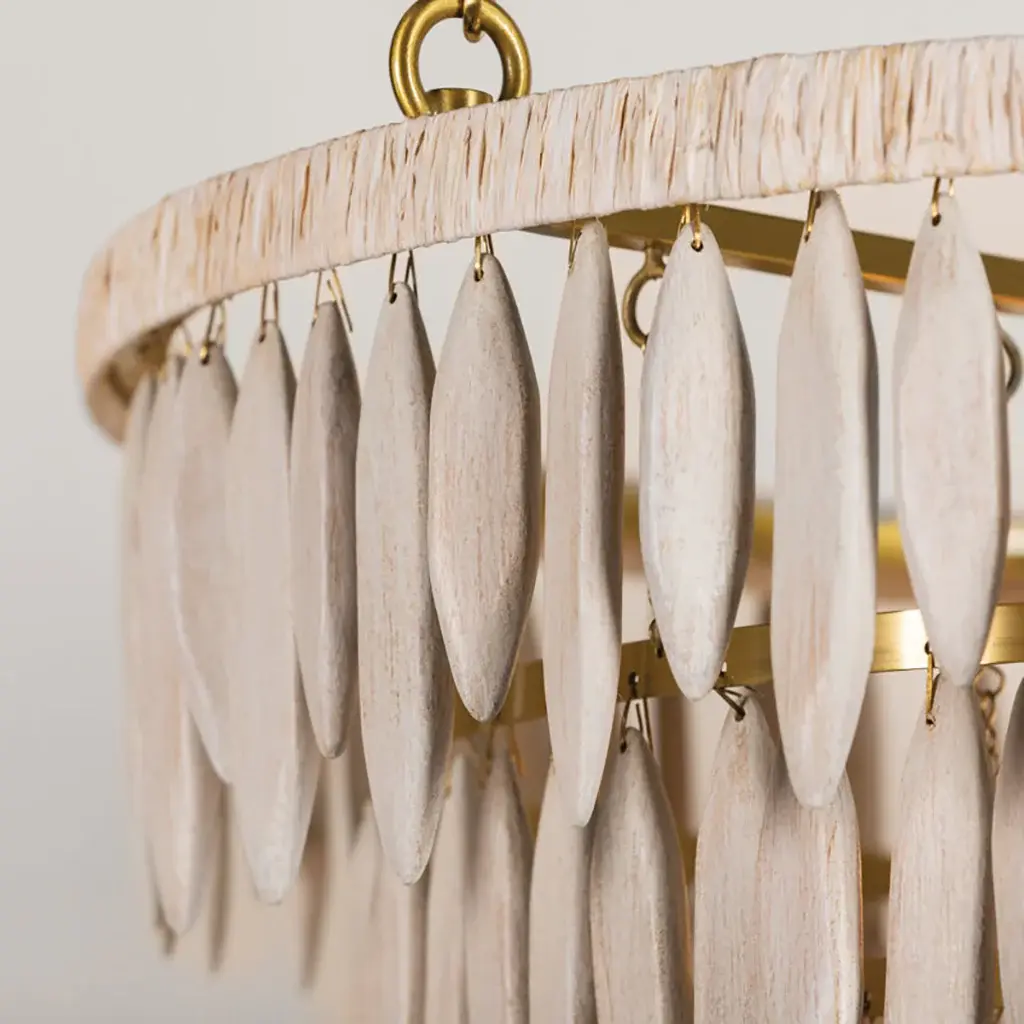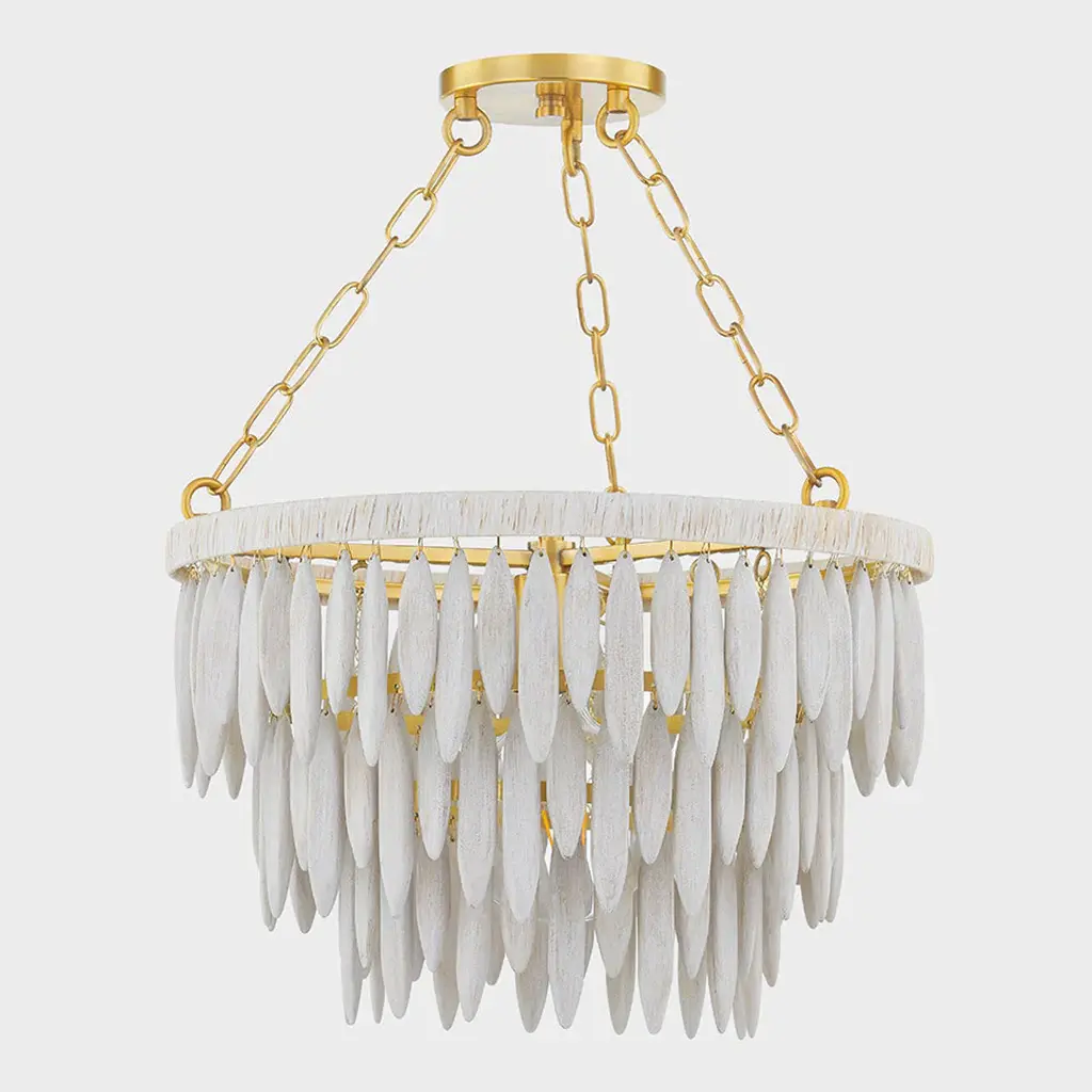 Introduce a touch of elegance and luxury into your home with the Tiffany Chandelier from Mitzi by Hudson Valley. The elevated organic design features elongated white-washed wood beads and an Aged Brass framework, creating a sculptural form. Topped with white raffia, this chandelier exudes a fresh and coastal feel, perfect for adding a touch of organic charm to any space. Highlights