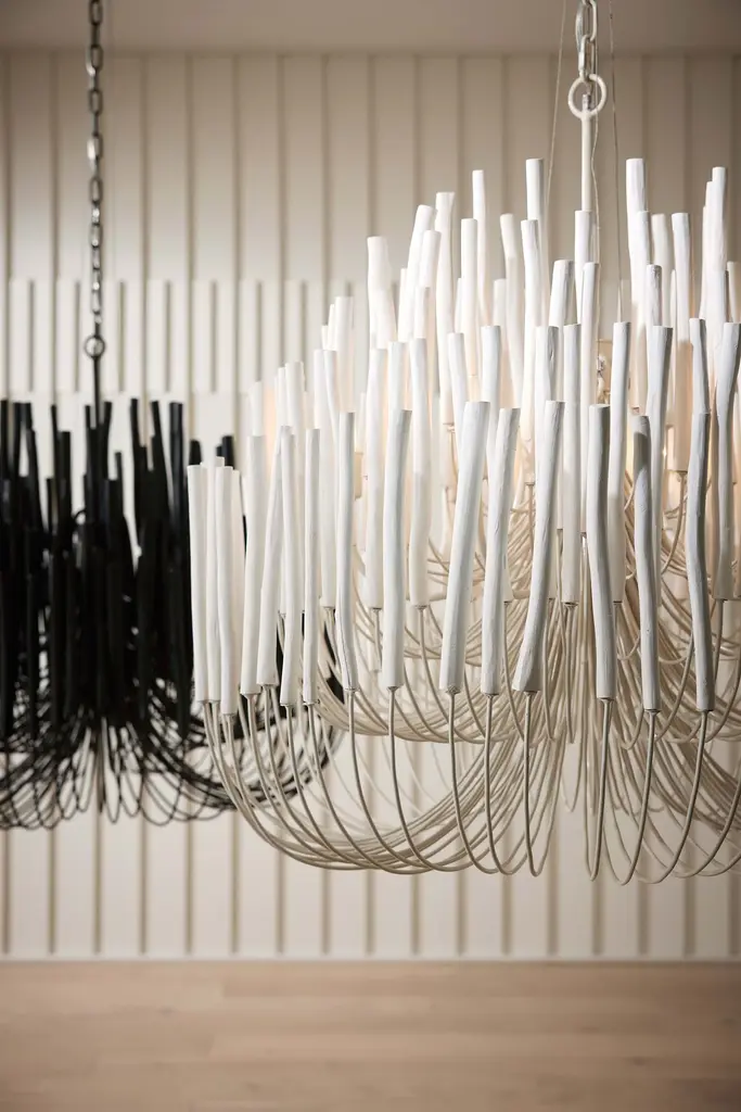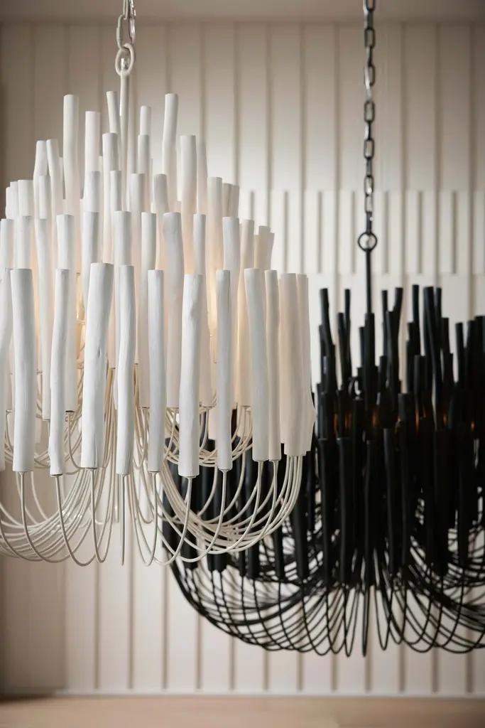 Graceful and elegant, with a layered silhouette, the Tilda Chandelier from Arteriors is a striking luminary ready to bring a soft glow to your favorite interiors. Showcasing several tiers of painted wood on pliable, curved arms, when switched on, the light glows from within and transforms your room into a visually magical space. From coastal chic to sophisticated Scandinavian spaces, this handcrafted chandelier adds visual appeal that draws the eye upwards for a glowing focal point. Highlights