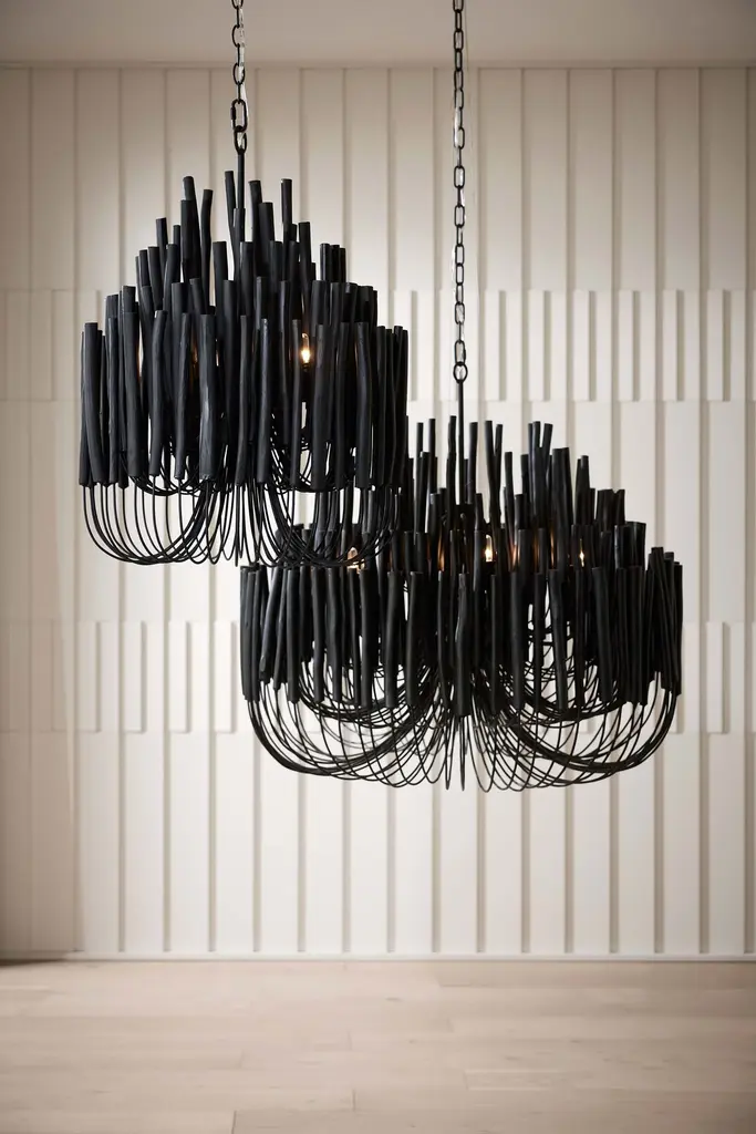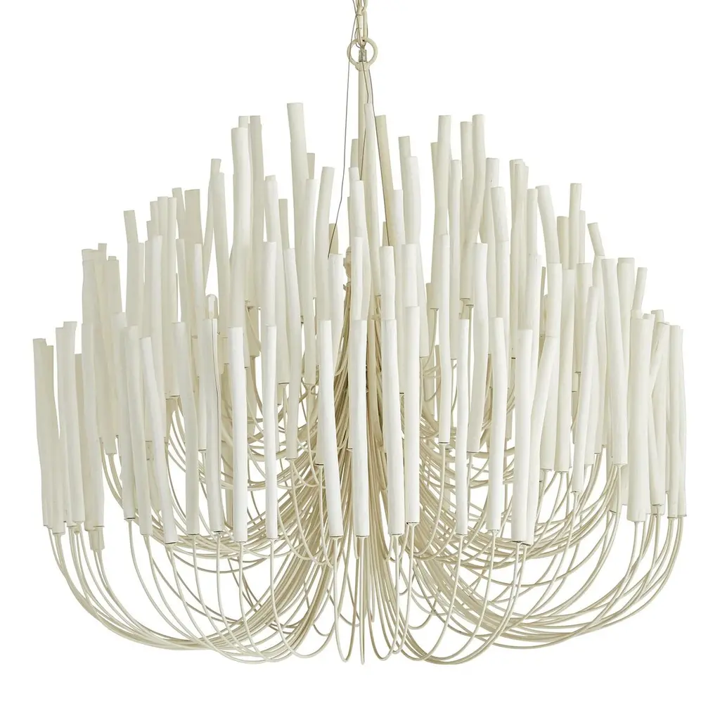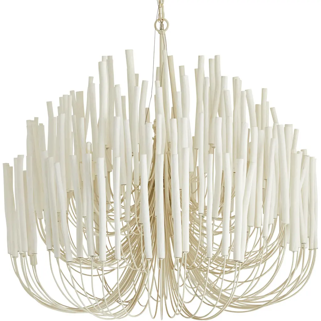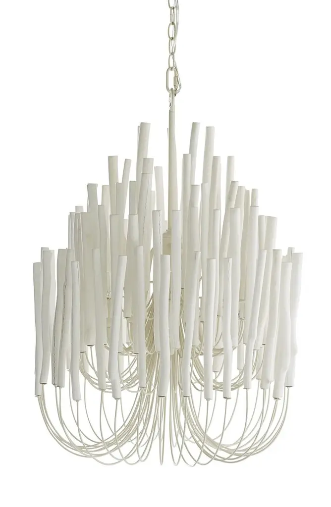 Graceful and elegant, with a layered silhouette, the Tilda Chandelier from Arteriors is a striking luminary ready to bring a soft glow to your favorite interiors. Showcasing several tiers of painted wood on pliable, curved arms, when switched on, the light glows from within and transforms your room into a visually magical space. From coastal chic to sophisticated Scandinavian spaces, this handcrafted chandelier adds visual appeal that draws the eye upwards for a glowing focal point. Highlights