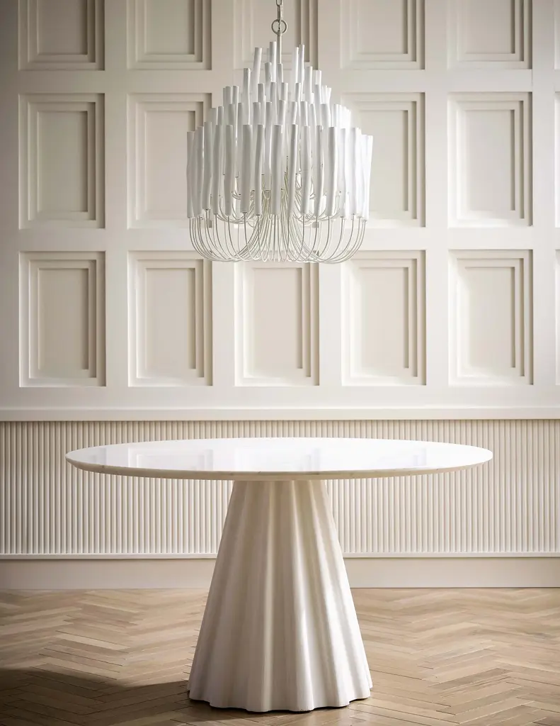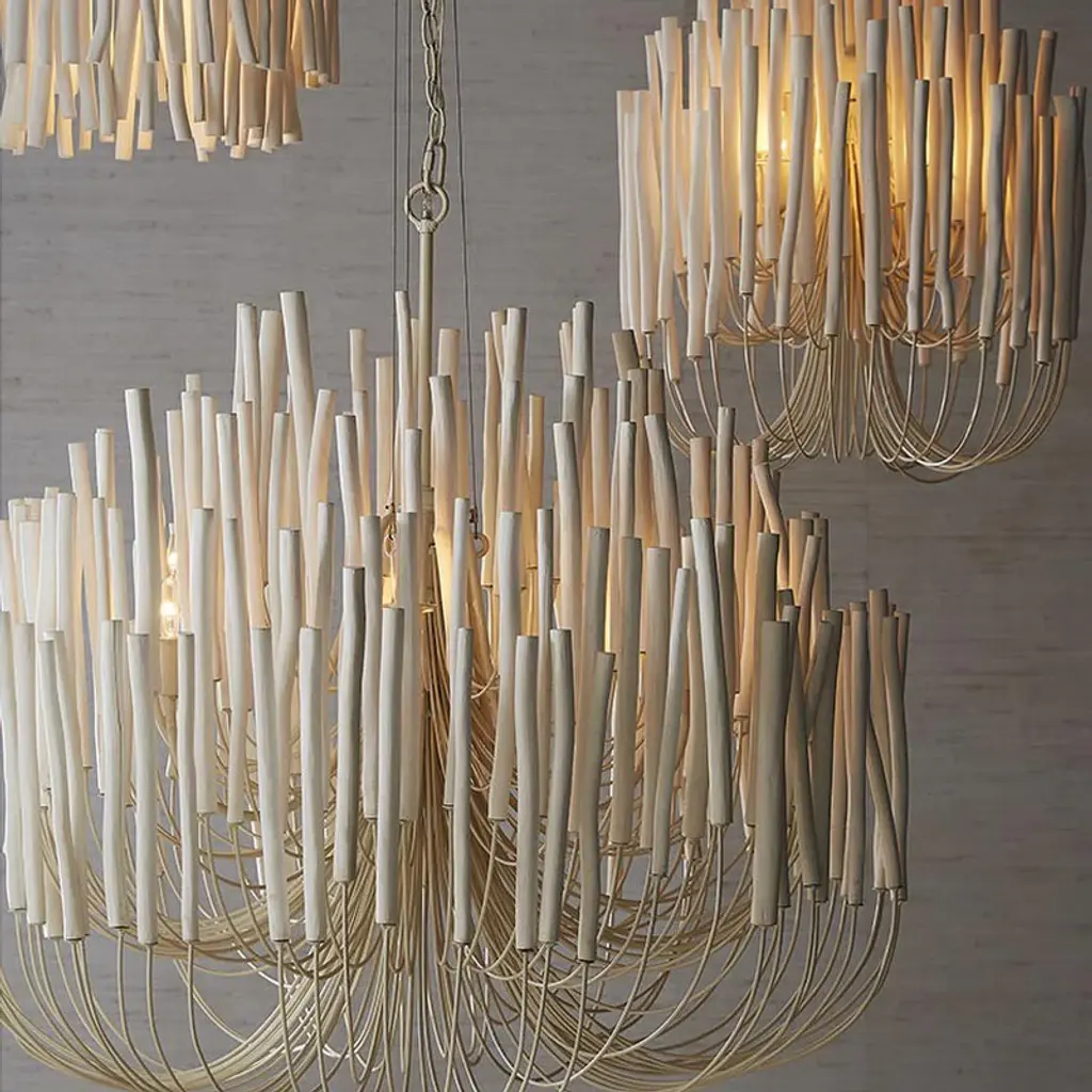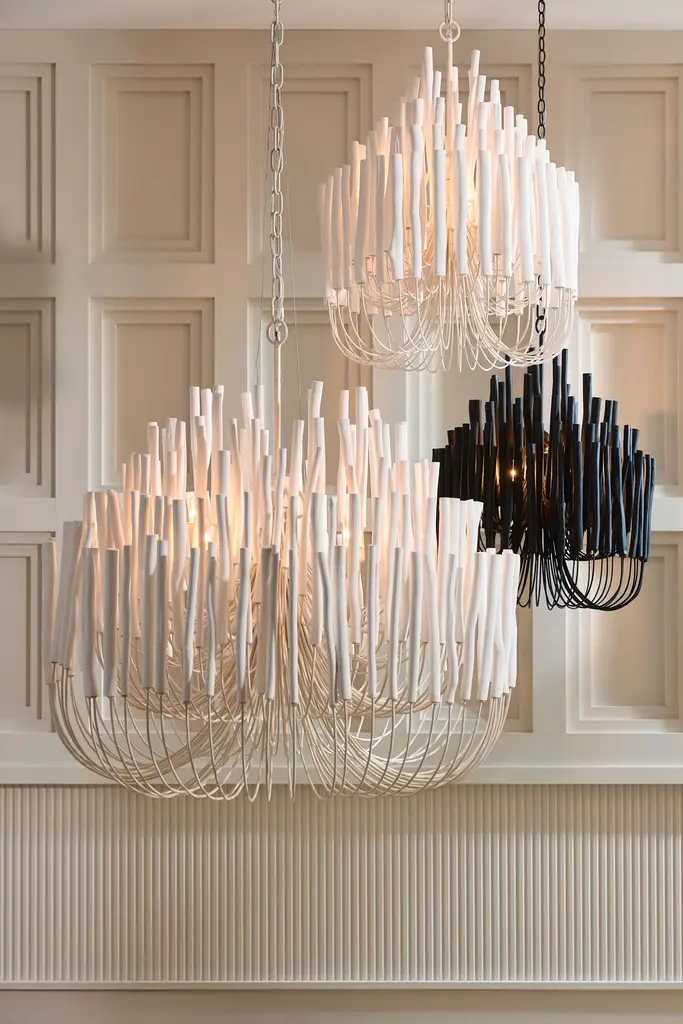 Graceful and elegant, with a layered silhouette, the Tilda Chandelier from Arteriors is a striking luminary ready to bring a soft glow to your favorite interiors. Showcasing several tiers of painted wood on pliable, curved arms, when switched on, the light glows from within and transforms your room into a visually magical space. From coastal chic to sophisticated Scandinavian spaces, this handcrafted chandelier adds visual appeal that draws the eye upwards for a glowing focal point. Highlights