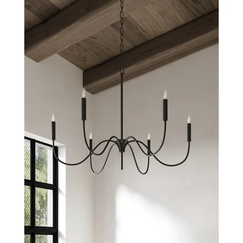 Tirrell 6 Light 34 Inch Antique Black Chandelier Ceiling Light, Small