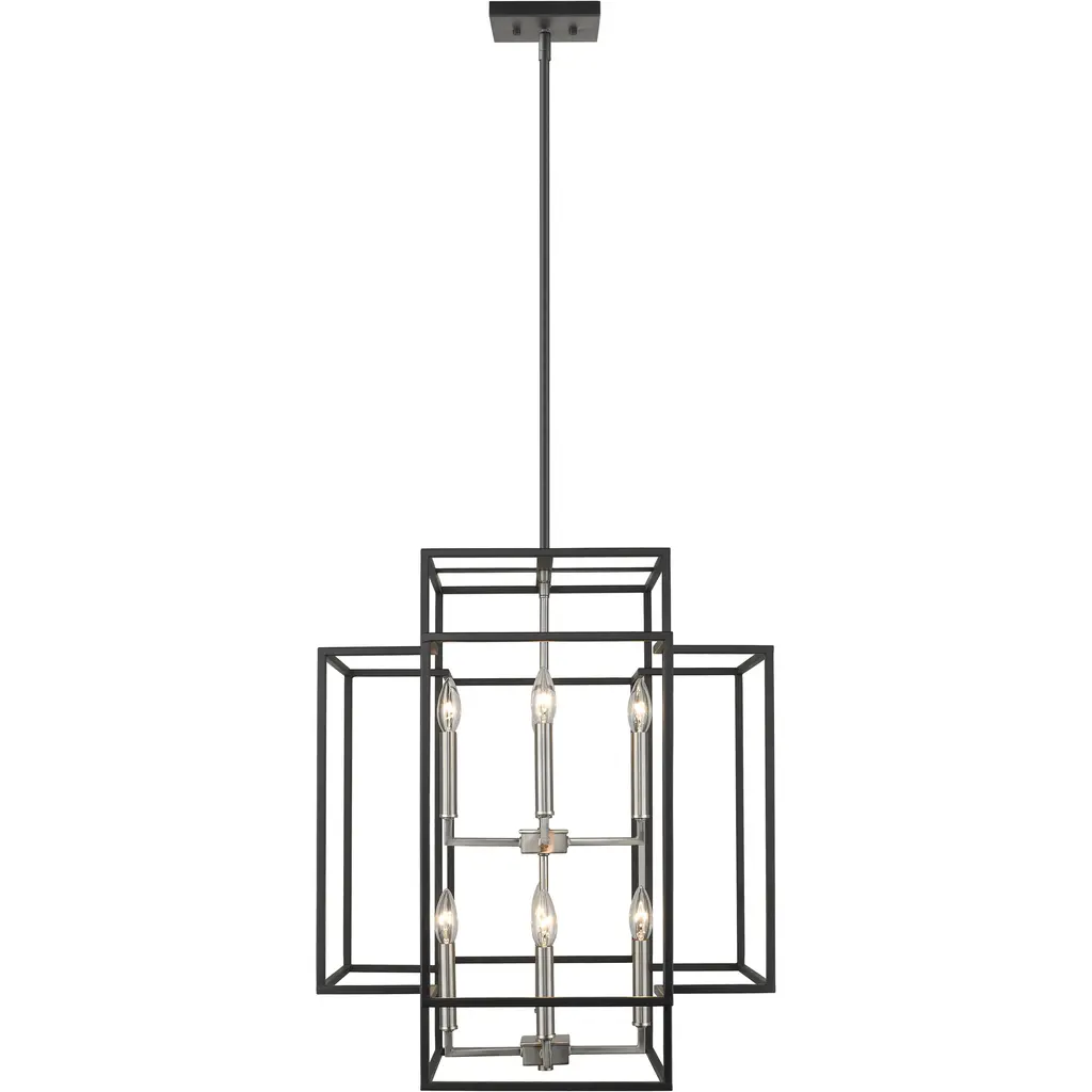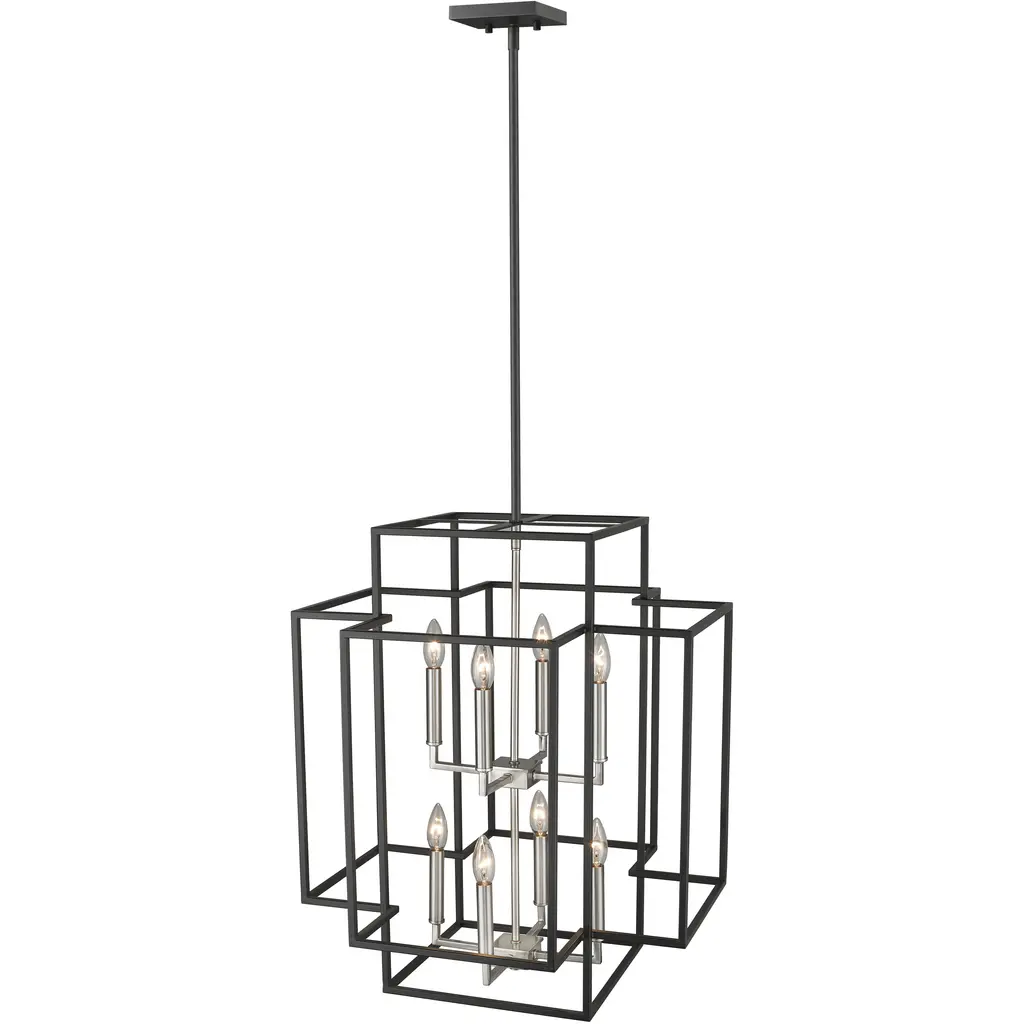 Dimensionality and open-concept design bring an enticing flavor to this black and brushed nickel steel eight-light pendant. With a commanding-yet-versatile presence, it delivers radiant illumination in a motif that blends crisp modern style with a soft romantic touch.