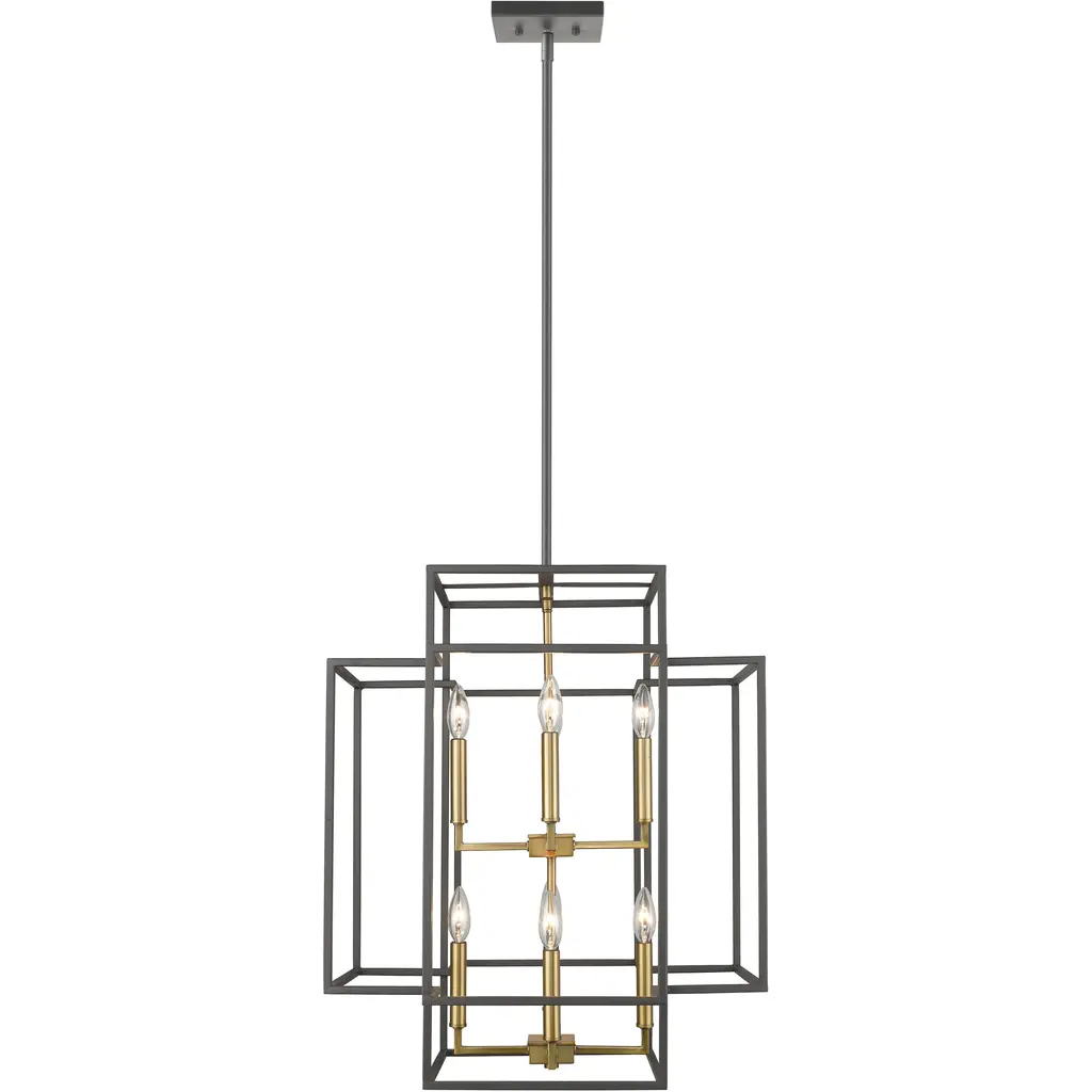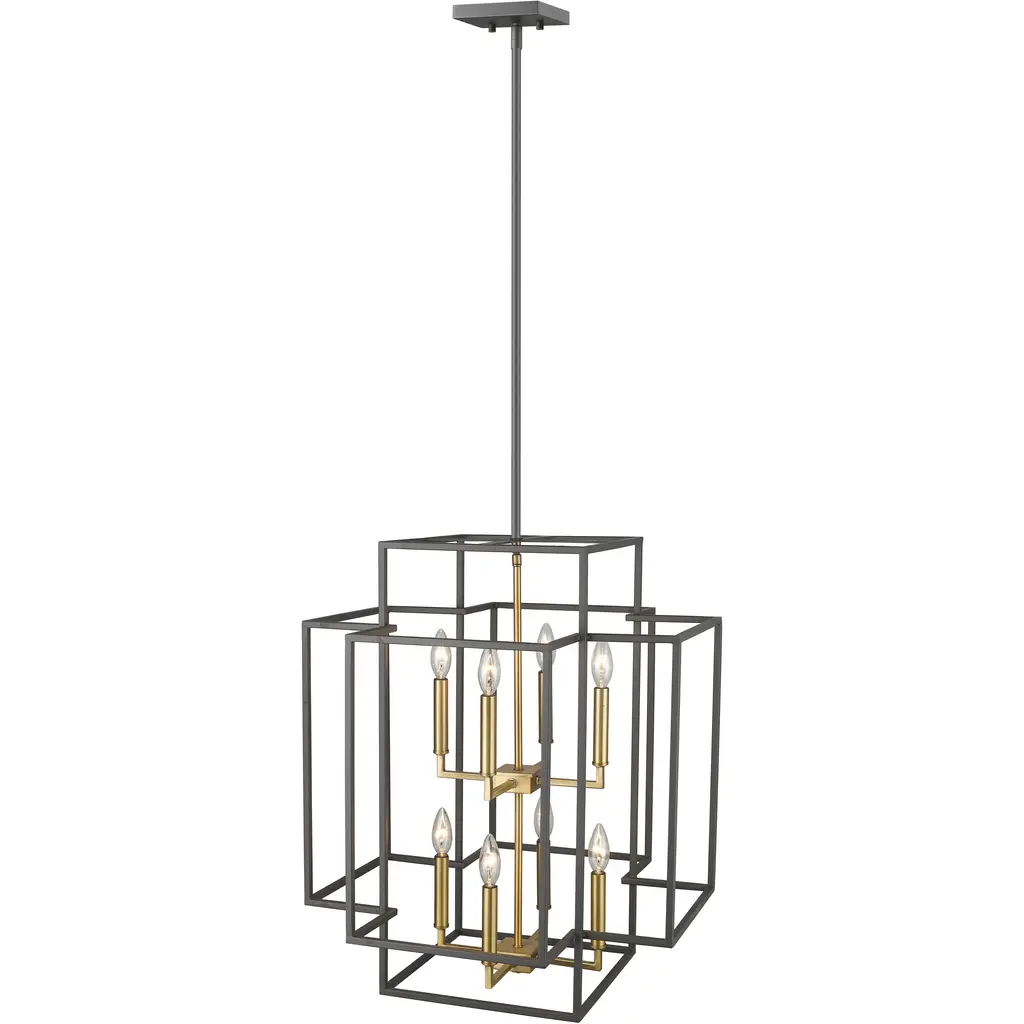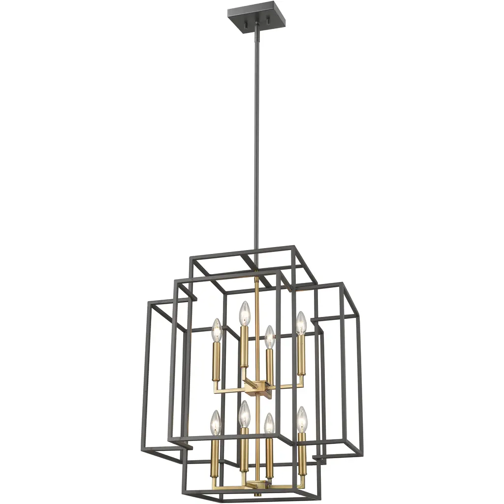 Choose this stunning eight-light pendant as a primary light source for a modern space. A blend of warm bronze and olde brass finish steel highlights a delightful blend of linear architecture and soft, romantic candelabra bulb bases, creating a versatile and artistic mood.
