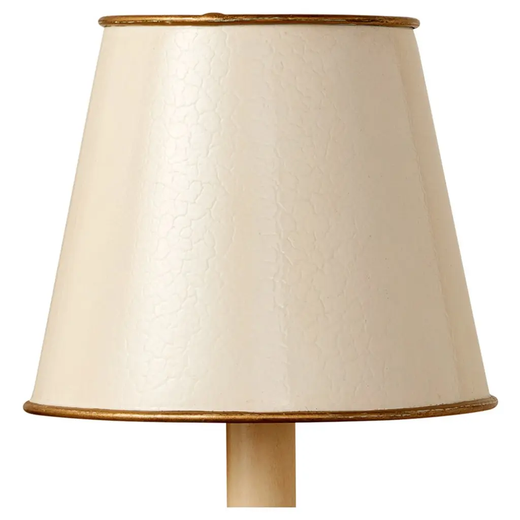 Petite shades are an easy way to bring added style and refinement to a space. The Tole Ivory Tapered Chandelier Shade is made of metal in a cream finish with raised rims of gold detailing at the top and bottom of the shade, which is fitted with a candle clip. The finish has a subtle crackle effect that will add a classic patina to any fixture.