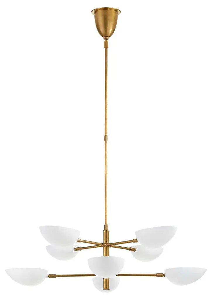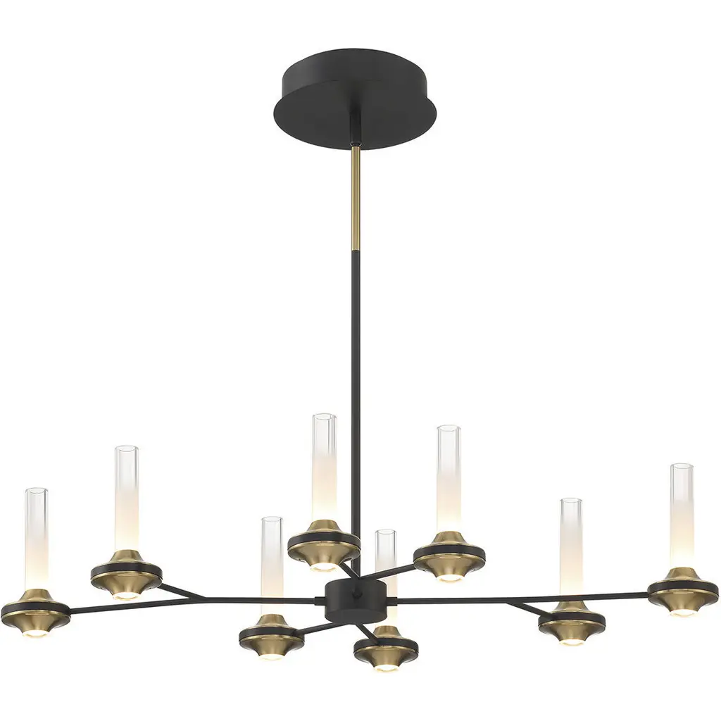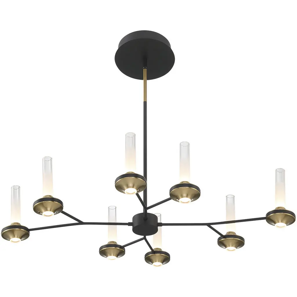 Oil-based wick burners featured a reservoir that fueled the flame of early lighting fixtures. This traditional shape has been transformed to encompass modern LED technology, producing illumination through a partially frosted candle tube, and a secondary down light source. These elegant shapes are configured on branch-like arms, complimenting transitional and traditional interior settings.