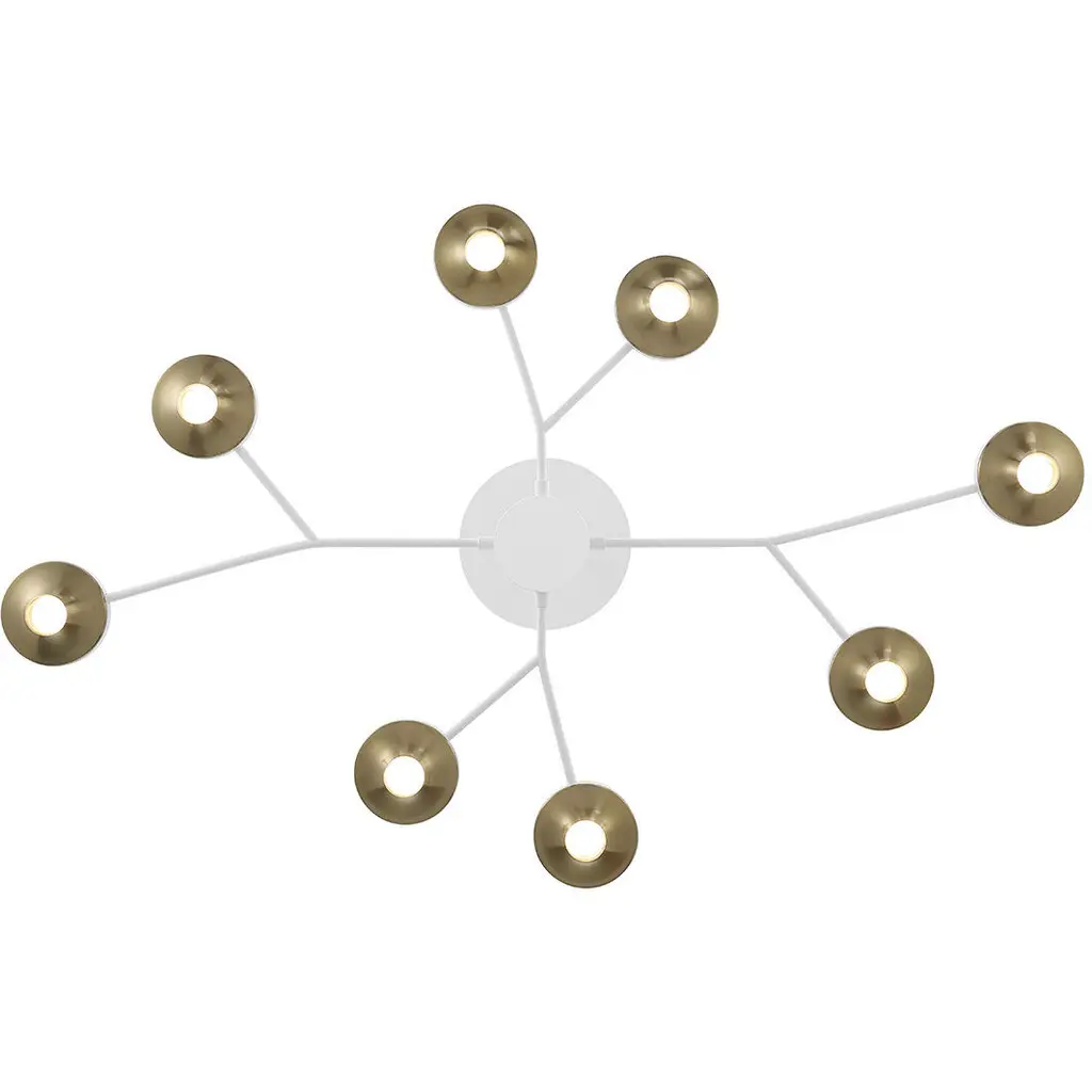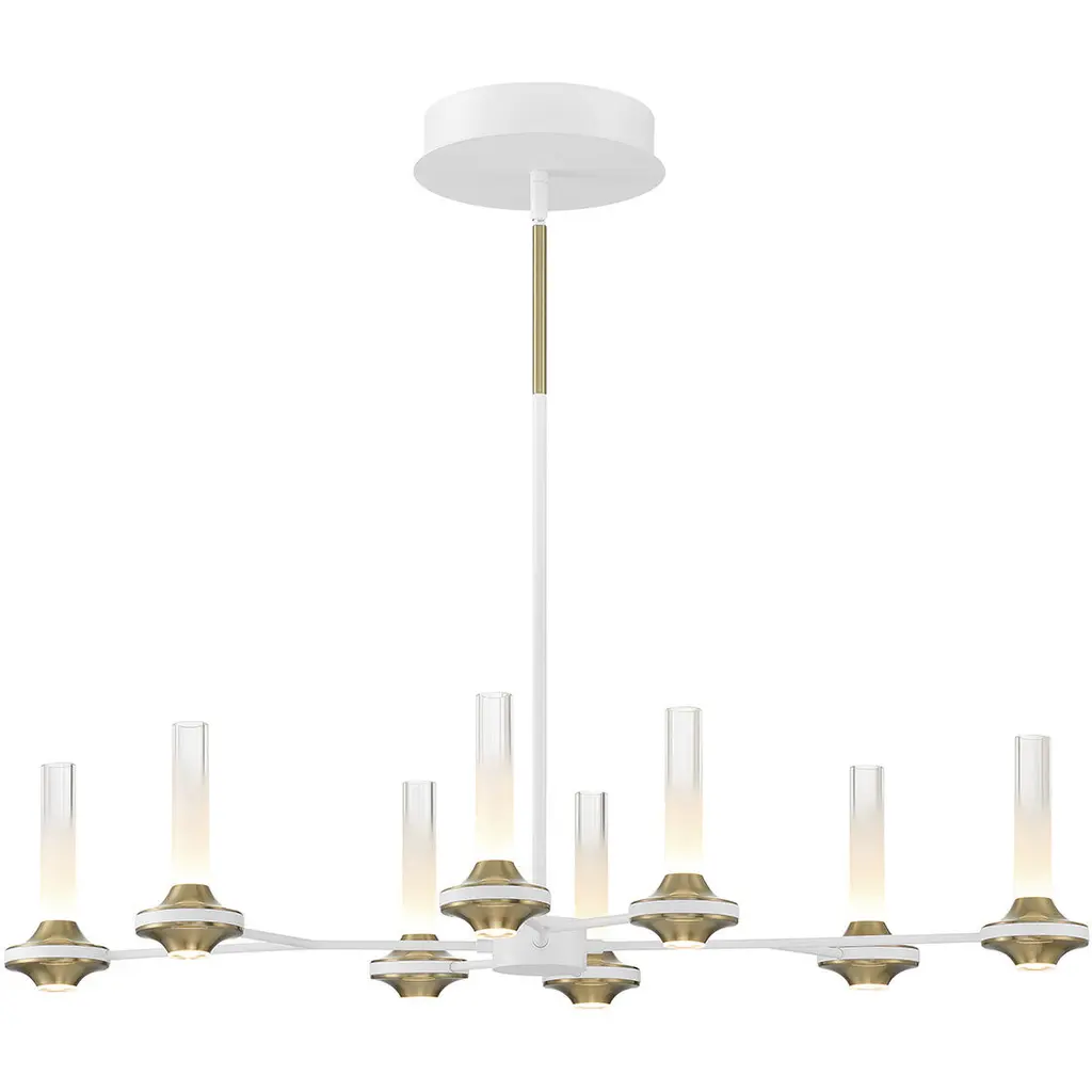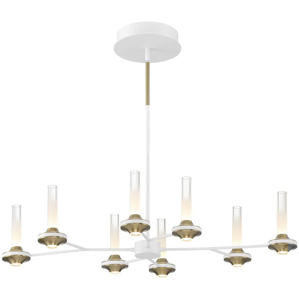 Oil-based wick burners featured a reservoir that fueled the flame of early lighting fixtures. This traditional shape has been transformed to encompass modern LED technology, producing illumination through a partially frosted candle tube, and a secondary down light source. These elegant shapes are configured on branch-like arms, complimenting transitional and traditional interior settings.