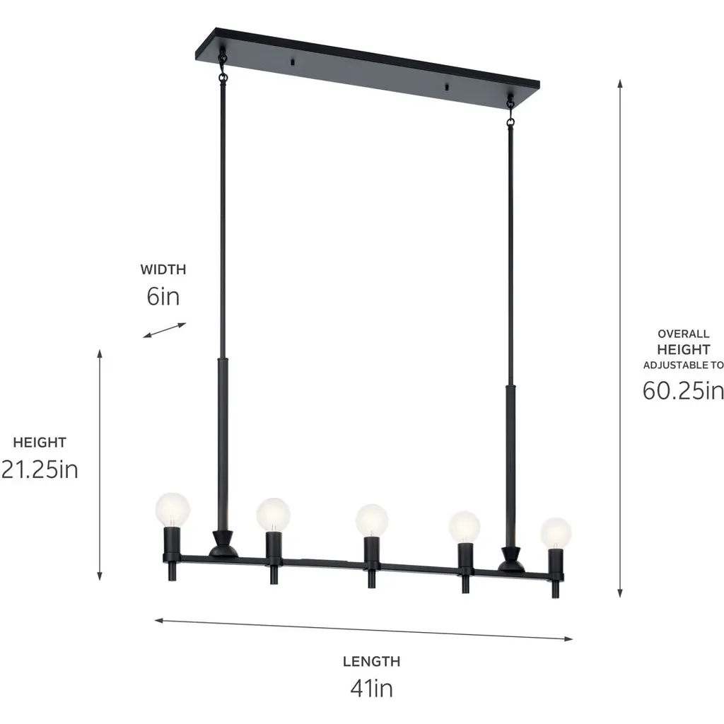 Torvee 5 Light 2.75 Inch Black Chandelier Linear Ceiling Light