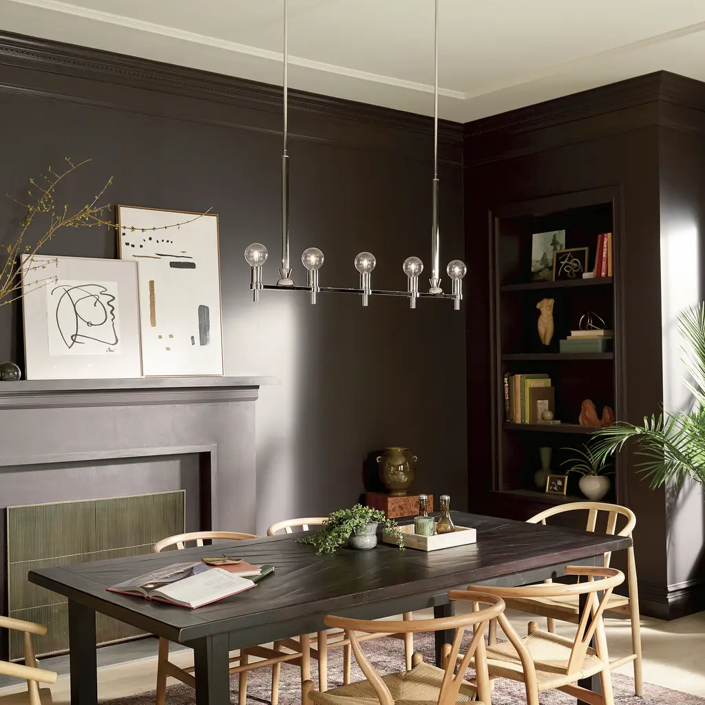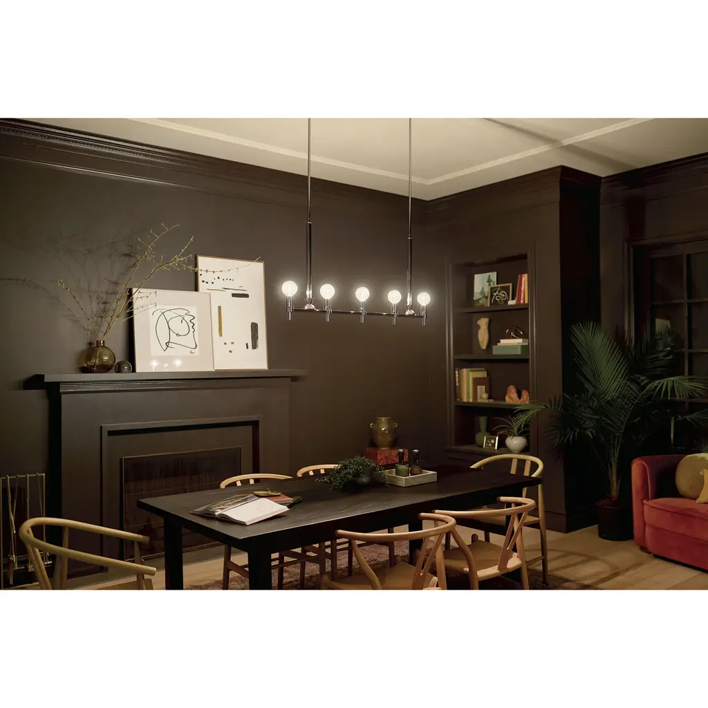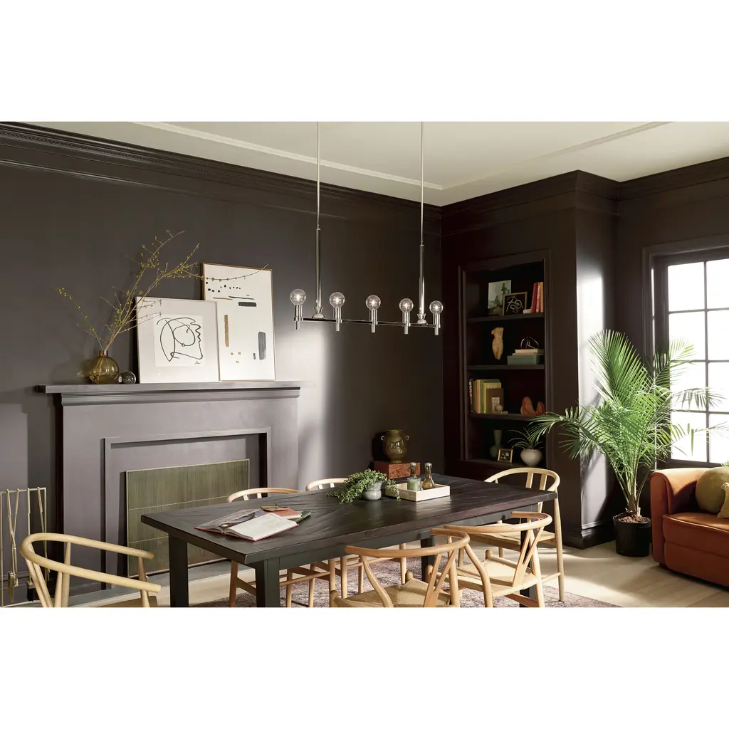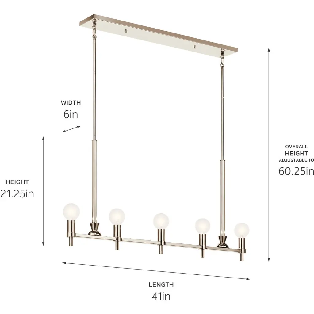 Torvee 5 Light 2.75 Inch Nickel Textured Chandelier Linear Ceiling Light In Polished Nickel