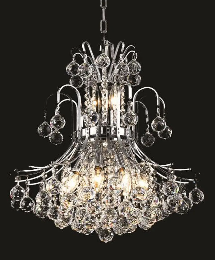 A treasure trove of glittering crystals, Toureg collection pendant lamps are generous with their sparkle. Stately curved steel arms and frame form an opulent flared shape available in black, chrome or gold finishes. Faceted clear crystal balls and crystal octagons offer a variety of options to choose from. Certain to be the center of attention in the dining room, living room, bedroom, or stairwell.