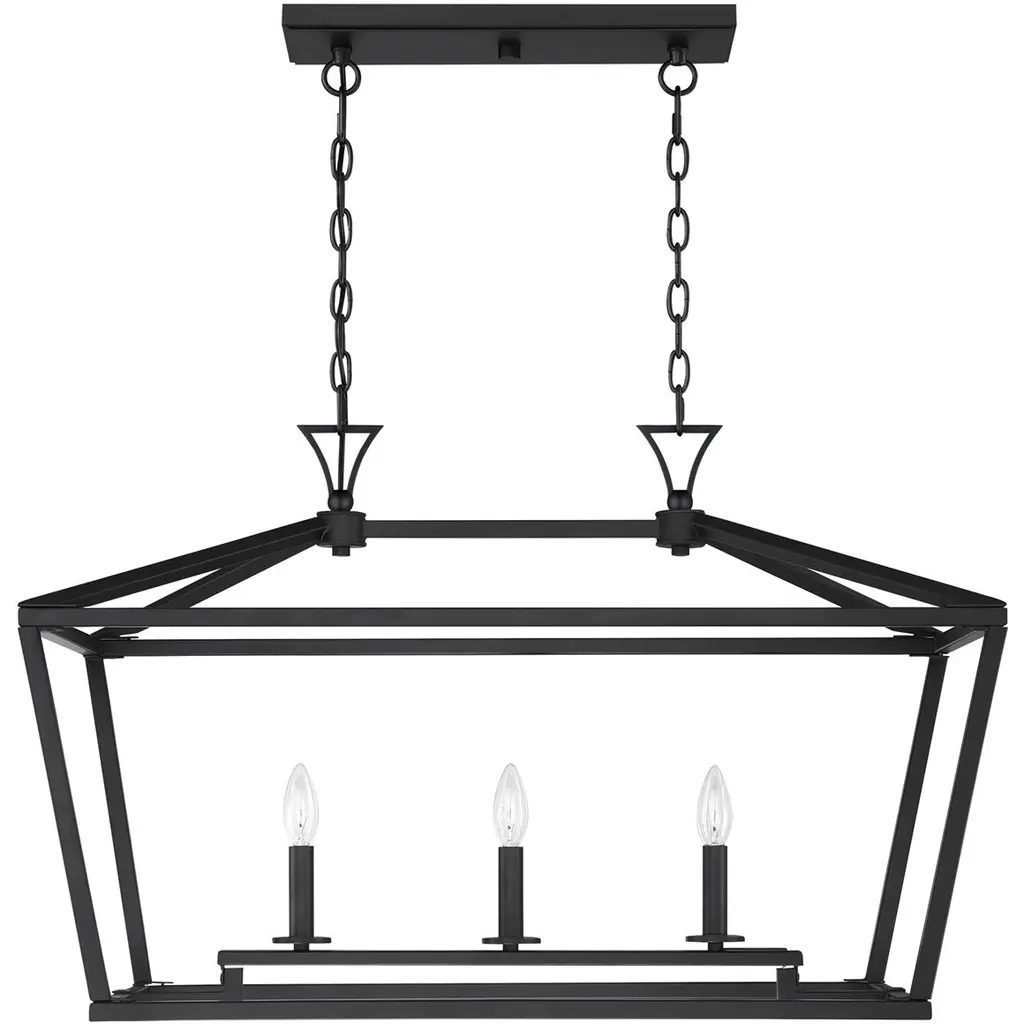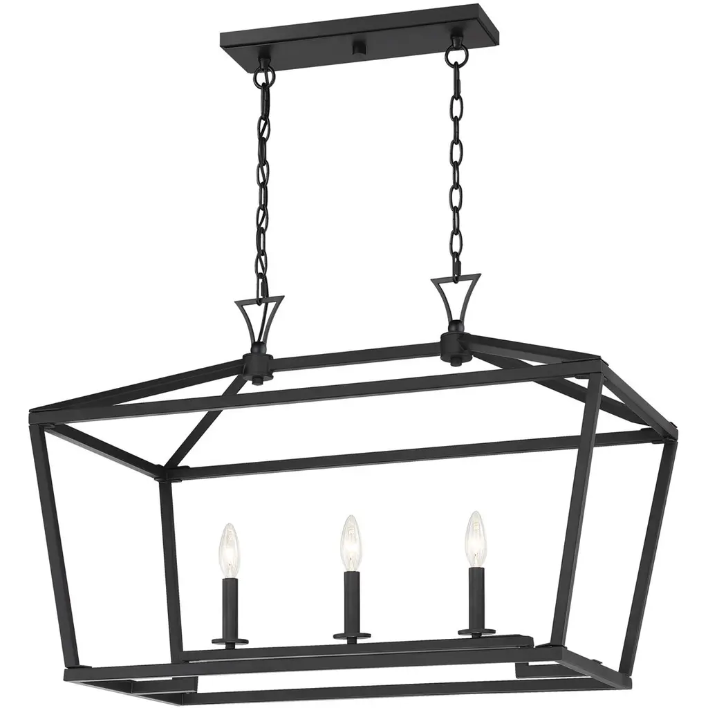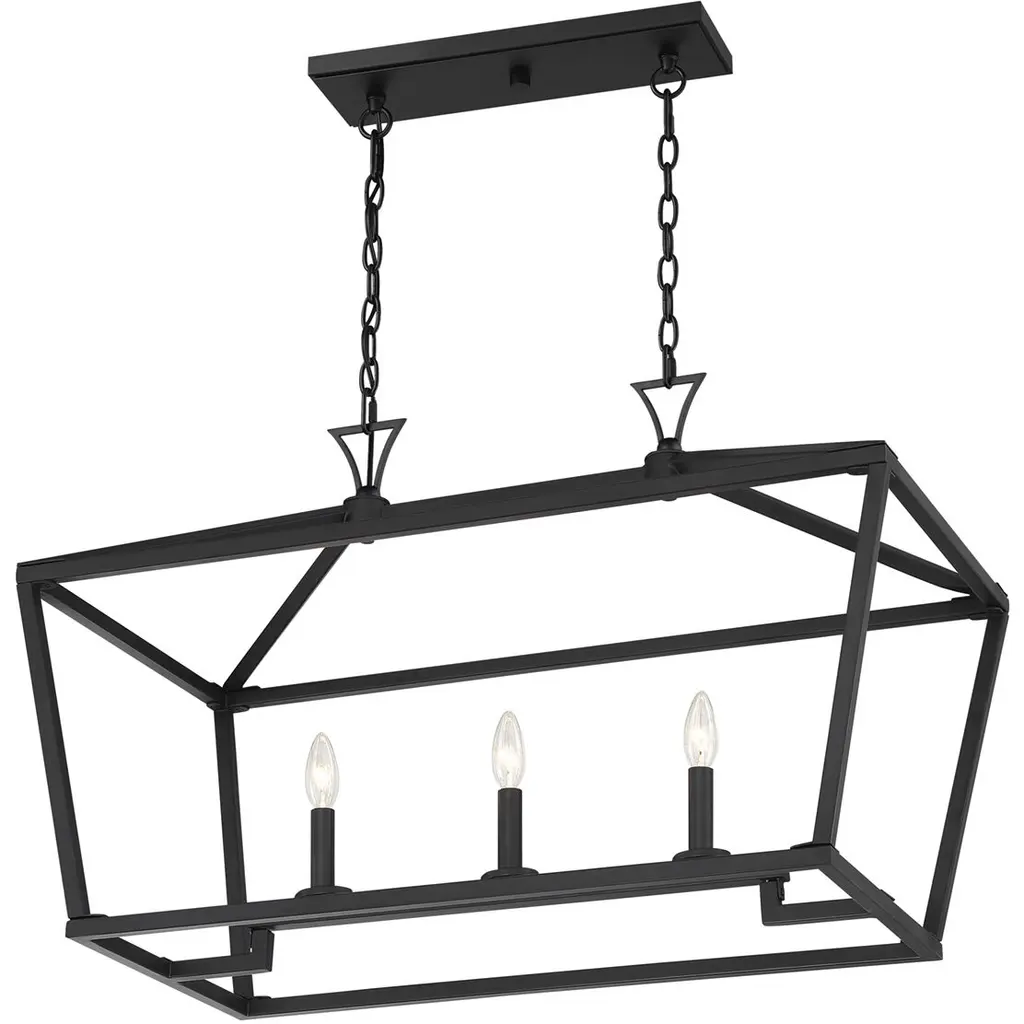 The Savoy House Townsend 3-light trestle offers up a casual open lantern look that is the perfect addition for any space inside the home. matte black finish. Trestle lights are ideal for use over rectangular dining room tables or kitchen islands, but you can also use them in living rooms, great rooms, over pool tables and in media rooms, too. Bulbs not included. Try using stylized bulbs like Edison or tubular bulbs for a different look The matte black finish can be matched with black hardware or mixed with hardware in other finishes. Townsend is a great option for adding a bold touch to rooms in transitional, farmhouse or classic style. When you choose a Savoy House lighting fixture, you can be certain you've selected a piece that will withstand the test of time.