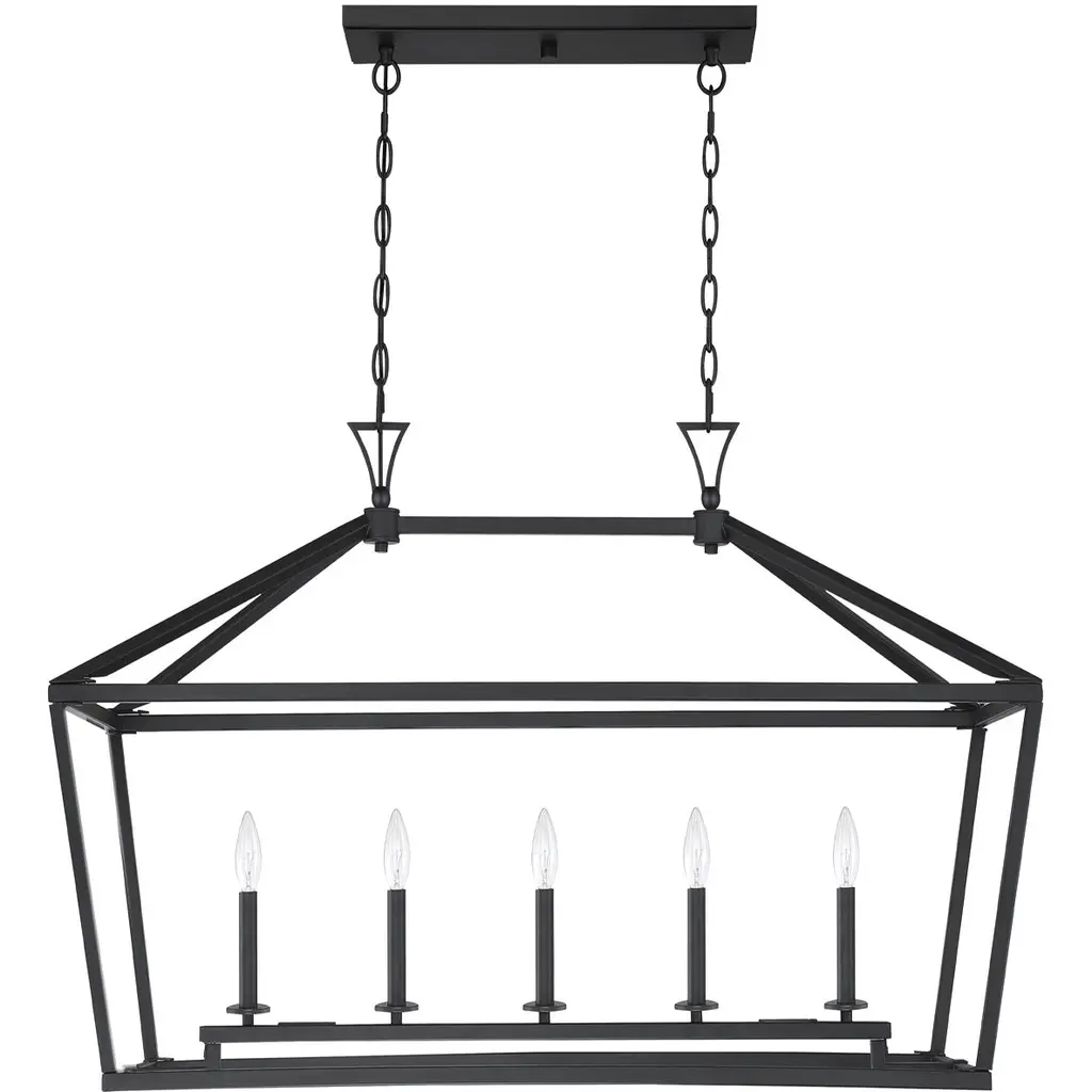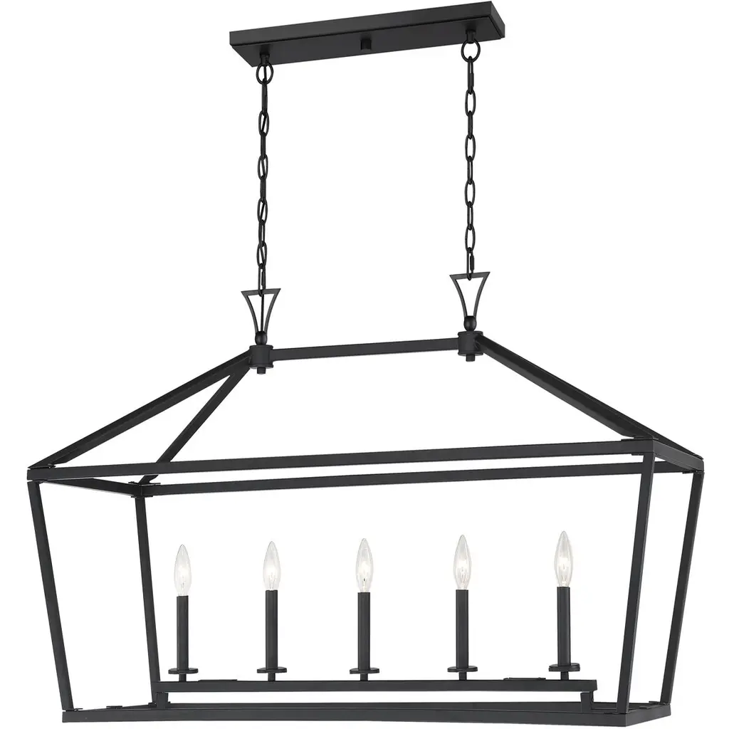 The Savoy House Townsend 5-light trestle offers up a casual open lantern look that is the perfect addition for any space inside the home. Matte black finish. Trestle lights are ideal for use over rectangular dining room tables or kitchen islands, but you can also use them in living rooms, great rooms, over pool tables and in media rooms, too. Bulbs not included. Try using stylized bulbs for a different look The matte black finish can be matched with black hardware or mixed with hardware in other finishes. Townsend is a great option for adding a bold touch to rooms in transitional, farmhouse or classic style. When you choose a Savoy House lighting fixture, you can be certain you've selected a piece that will withstand the test of time.